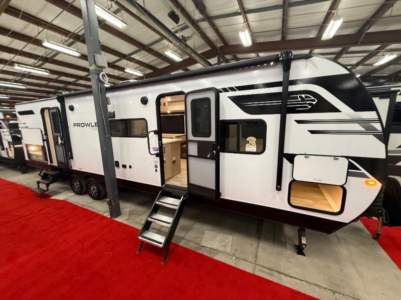 With any Prowler travel trailer, you will enjoy convenient amenities and at-home comforts wherever you decide to camp! Each one is built with a durable fully integrated A-frame, a TrussXL roof system, and galvanized wheel wells. And the self-adjusting brakes, easy-lube axles and nitrogen filled radial tires will provide smooth towing. Inside, you'll enjoy vinyl flooring throughout that will be easy to keep clean, durable, residential-inspired kitchen countertops, a residential-style high-rise kitchen faucet, and solid hardwood cabinet doors with hidden hinges and screwed stile construction. The mandatory Camping in Comfort Package includes a large folding entry door grab handle, MORryde Step Above entry steps, an on-demand tankless water heater, and stylish window shades. There are also available options that vary between single and double axle units that will allow you to customize your Prowler to fit your needs!