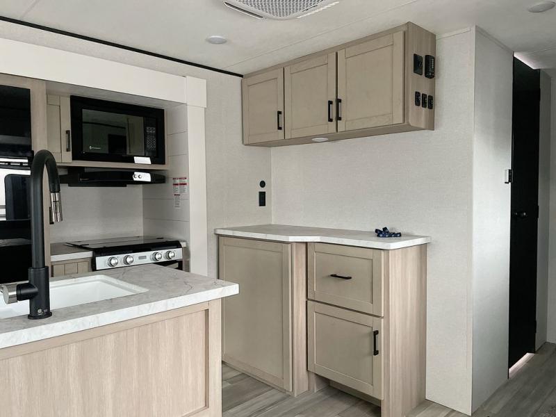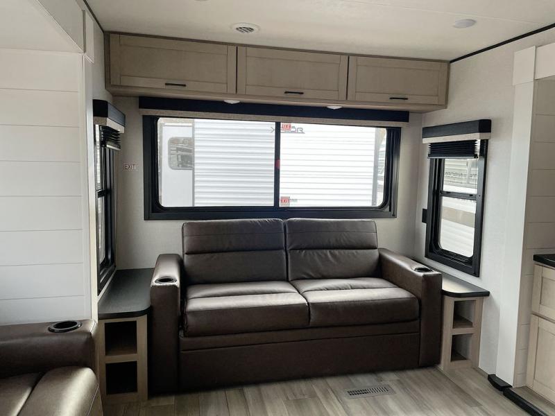 With any Prowler travel trailer, you will enjoy convenient amenities and at-home comforts wherever you decide to camp! Each one is built with a durable fully integrated A-frame, a TrussXL roof system, and galvanized wheel wells. And the self-adjusting brakes, easy-lube axles and nitrogen filled radial tires will provide smooth towing. Inside, you'll enjoy vinyl flooring throughout that will be easy to keep clean, durable, residential-inspired kitchen countertops, a residential-style high-rise kitchen faucet, and solid hardwood cabinet doors with hidden hinges and screwed stile construction. The mandatory Camping in Comfort Package includes a large folding entry door grab handle, MORryde Step Above entry steps, an on-demand tankless water heater, and stylish window shades. There are also available options that vary between single and double axle units that will allow you to customize your Prowler to fit your needs!