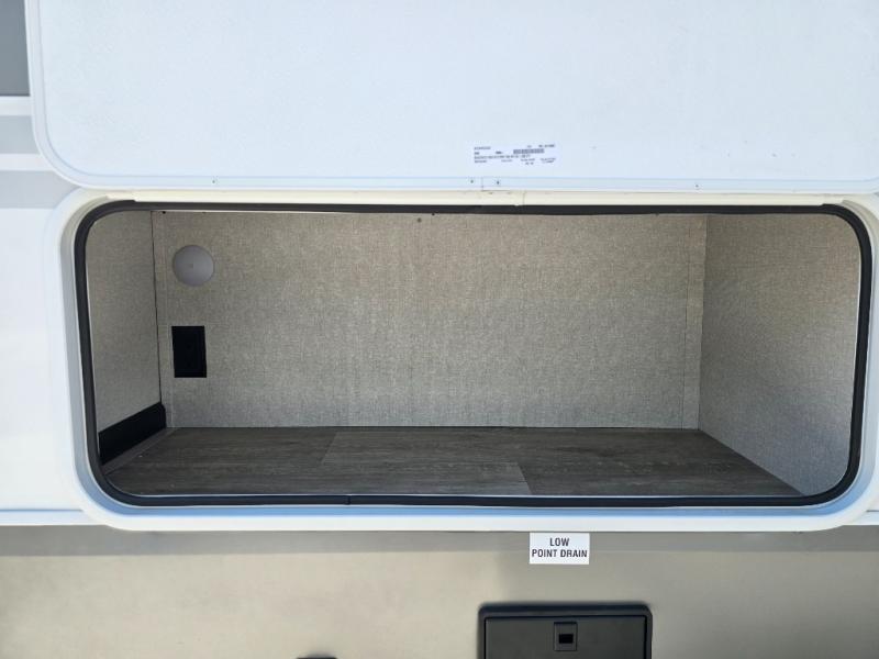 Each Heartland Sundance Fifth Wheel features ThermaShield, a zero-degree tested weather protection system that ensures comfort. This system features a fully enclosed and heated underbelly (ducted) that protects vital systems and provides warmth in cold climates. The AeroChill directional cooling system offers precise temperature control, creating a refreshing and comfortable atmosphere. Inside, you can stay connected on the go with the multiple USB-C 12V charging ports, and the Winegard Air 360 4G + Antenna & router prep that ensures reliable internet connectivity and seamless streaming. The units boast 5/8 in. tongue-and-groove plywood flooring, providing a sturdy and durable foundation, a Keyed-Alike lock system, and the rainproof bathroom power vent ensures a comfortable bathroom experience, removing moisture and odors efficiently.