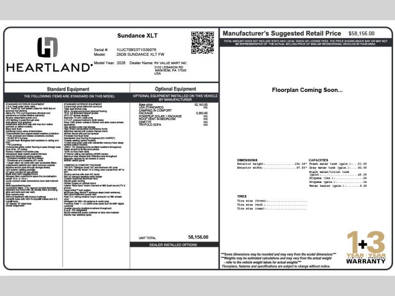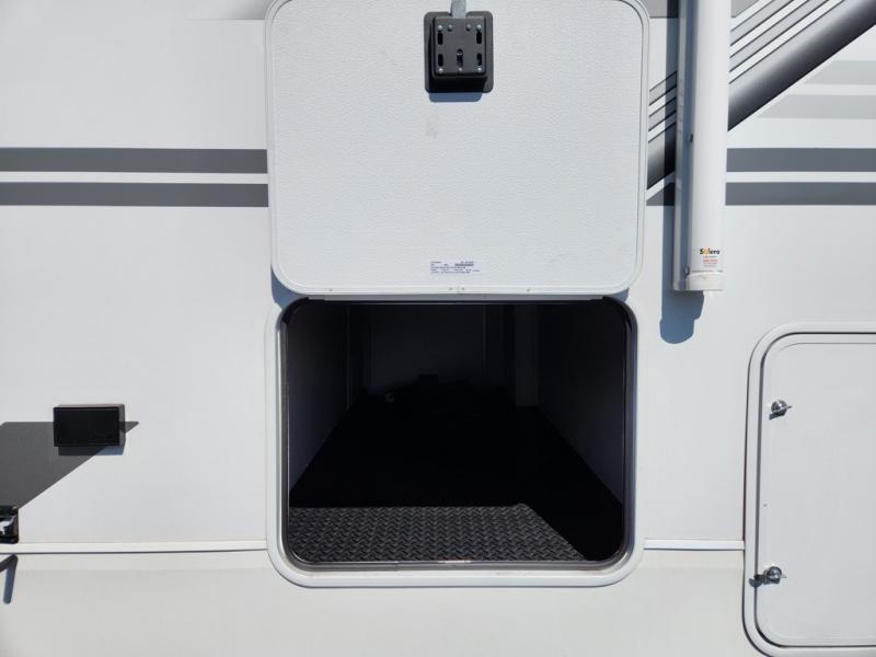 Each Heartland Sundance Fifth Wheel features ThermaShield, a zero-degree tested weather protection system that ensures comfort. This system features a fully enclosed and heated underbelly (ducted) that protects vital systems and provides warmth in cold climates. The AeroChill directional cooling system offers precise temperature control, creating a refreshing and comfortable atmosphere. Inside, you can stay connected on the go with the multiple USB-C 12V charging ports, and the Winegard Air 360 4G + Antenna & router prep that ensures reliable internet connectivity and seamless streaming. The units boast 5/8 in. tongue-and-groove plywood flooring, providing a sturdy and durable foundation, a Keyed-Alike lock system, and the rainproof bathroom power vent ensures a comfortable bathroom experience, removing moisture and odors efficiently.