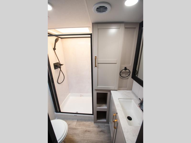 Each Heartland Sundance Fifth Wheel features ThermaShield, a zero-degree tested weather protection system that ensures comfort. This system features a fully enclosed and heated underbelly (ducted) that protects vital systems and provides warmth in cold climates. The AeroChill directional cooling system offers precise temperature control, creating a refreshing and comfortable atmosphere. Inside, you can stay connected on the go with the multiple USB-C 12V charging ports, and the Winegard Air 360 4G + Antenna & router prep that ensures reliable internet connectivity and seamless streaming. The units boast 5/8 in. tongue-and-groove plywood flooring, providing a sturdy and durable foundation, a Keyed-Alike lock system, and the rainproof bathroom power vent ensures a comfortable bathroom experience, removing moisture and odors efficiently.