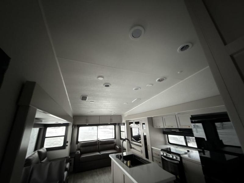 Each Heartland Sundance Fifth Wheel features ThermaShield, a zero-degree tested weather protection system that ensures comfort. This system features a fully enclosed and heated underbelly (ducted) that protects vital systems and provides warmth in cold climates. The AeroChill directional cooling system offers precise temperature control, creating a refreshing and comfortable atmosphere. Inside, you can stay connected on the go with the multiple USB-C 12V charging ports, and the Winegard Air 360 4G + Antenna & router prep that ensures reliable internet connectivity and seamless streaming. The units boast 5/8 in. tongue-and-groove plywood flooring, providing a sturdy and durable foundation, a Keyed-Alike lock system, and the rainproof bathroom power vent ensures a comfortable bathroom experience, removing moisture and odors efficiently.