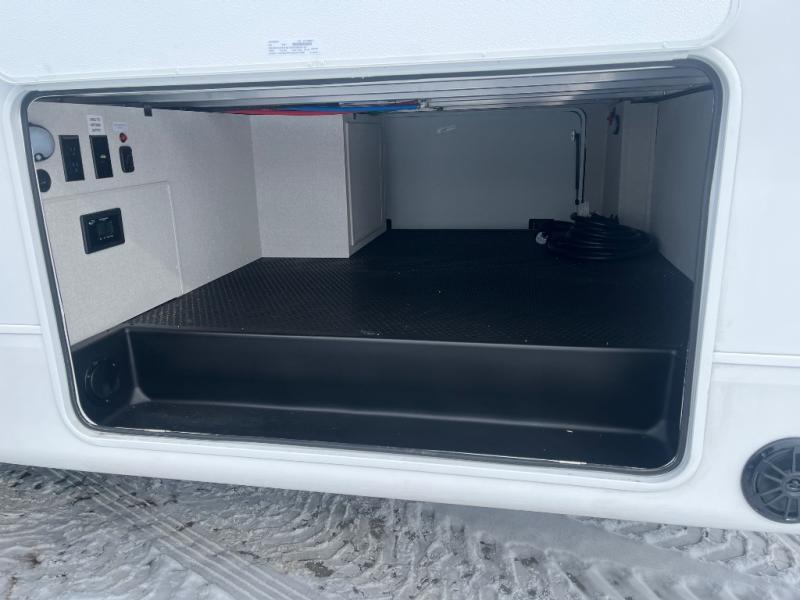 Each Heartland Sundance Fifth Wheel features ThermaShield, a zero-degree tested weather protection system that ensures comfort. This system features a fully enclosed and heated underbelly (ducted) that protects vital systems and provides warmth in cold climates. The AeroChill directional cooling system offers precise temperature control, creating a refreshing and comfortable atmosphere. Inside, you can stay connected on the go with the multiple USB-C 12V charging ports, and the Winegard Air 360 4G + Antenna & router prep that ensures reliable internet connectivity and seamless streaming. The units boast 5/8 in. tongue-and-groove plywood flooring, providing a sturdy and durable foundation, a Keyed-Alike lock system, and the rainproof bathroom power vent ensures a comfortable bathroom experience, removing moisture and odors efficiently.