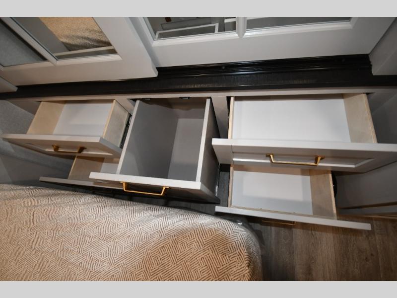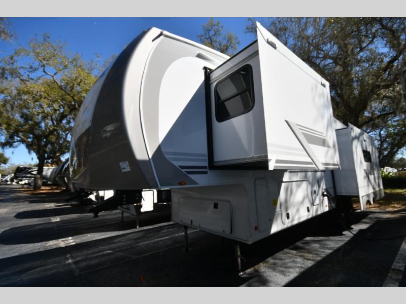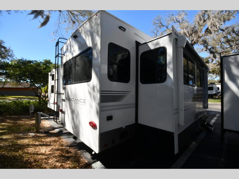 Each Heartland Sundance Fifth Wheel features ThermaShield, a zero-degree tested weather protection system that ensures comfort. This system features a fully enclosed and heated underbelly (ducted) that protects vital systems and provides warmth in cold climates. The AeroChill directional cooling system offers precise temperature control, creating a refreshing and comfortable atmosphere. Inside, you can stay connected on the go with the multiple USB-C 12V charging ports, and the Winegard Air 360 4G + Antenna & router prep that ensures reliable internet connectivity and seamless streaming. The units boast 5/8 in. tongue-and-groove plywood flooring, providing a sturdy and durable foundation, a Keyed-Alike lock system, and the rainproof bathroom power vent ensures a comfortable bathroom experience, removing moisture and odors efficiently.