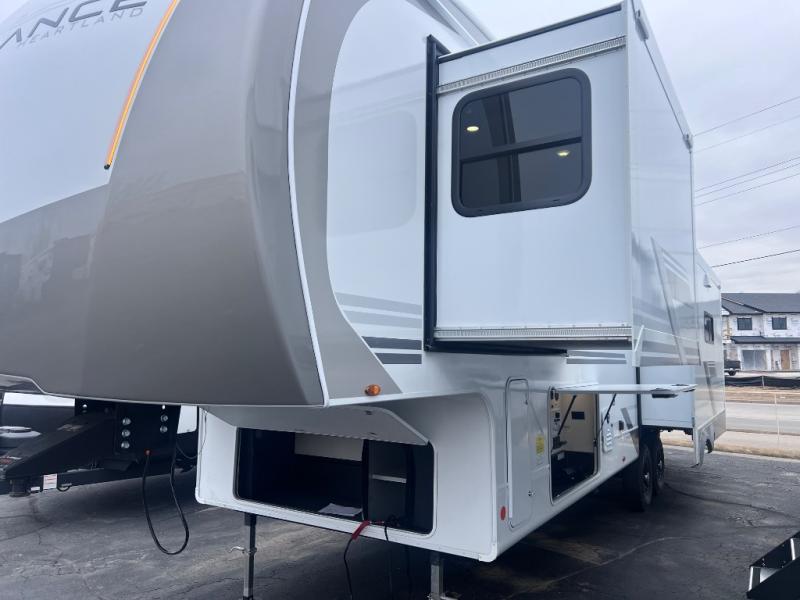 Each Heartland Sundance Fifth Wheel features ThermaShield, a zero-degree tested weather protection system that ensures comfort. This system features a fully enclosed and heated underbelly (ducted) that protects vital systems and provides warmth in cold climates. The AeroChill directional cooling system offers precise temperature control, creating a refreshing and comfortable atmosphere. Inside, you can stay connected on the go with the multiple USB-C 12V charging ports, and the Winegard Air 360 4G + Antenna & router prep that ensures reliable internet connectivity and seamless streaming. The units boast 5/8 in. tongue-and-groove plywood flooring, providing a sturdy and durable foundation, a Keyed-Alike lock system, and the rainproof bathroom power vent ensures a comfortable bathroom experience, removing moisture and odors efficiently.