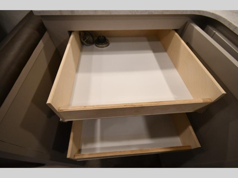 Each Heartland Sundance Fifth Wheel features ThermaShield, a zero-degree tested weather protection system that ensures comfort. This system features a fully enclosed and heated underbelly (ducted) that protects vital systems and provides warmth in cold climates. The AeroChill directional cooling system offers precise temperature control, creating a refreshing and comfortable atmosphere. Inside, you can stay connected on the go with the multiple USB-C 12V charging ports, and the Winegard Air 360 4G + Antenna & router prep that ensures reliable internet connectivity and seamless streaming. The units boast 5/8 in. tongue-and-groove plywood flooring, providing a sturdy and durable foundation, a Keyed-Alike lock system, and the rainproof bathroom power vent ensures a comfortable bathroom experience, removing moisture and odors efficiently.