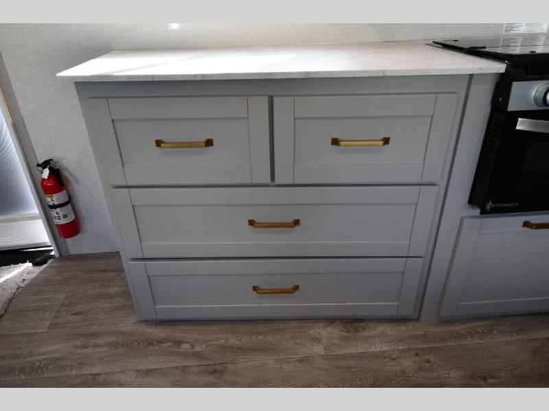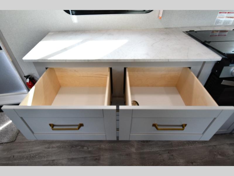 Each Heartland Sundance Fifth Wheel features ThermaShield, a zero-degree tested weather protection system that ensures comfort. This system features a fully enclosed and heated underbelly (ducted) that protects vital systems and provides warmth in cold climates. The AeroChill directional cooling system offers precise temperature control, creating a refreshing and comfortable atmosphere. Inside, you can stay connected on the go with the multiple USB-C 12V charging ports, and the Winegard Air 360 4G + Antenna & router prep that ensures reliable internet connectivity and seamless streaming. The units boast 5/8 in. tongue-and-groove plywood flooring, providing a sturdy and durable foundation, a Keyed-Alike lock system, and the rainproof bathroom power vent ensures a comfortable bathroom experience, removing moisture and odors efficiently.