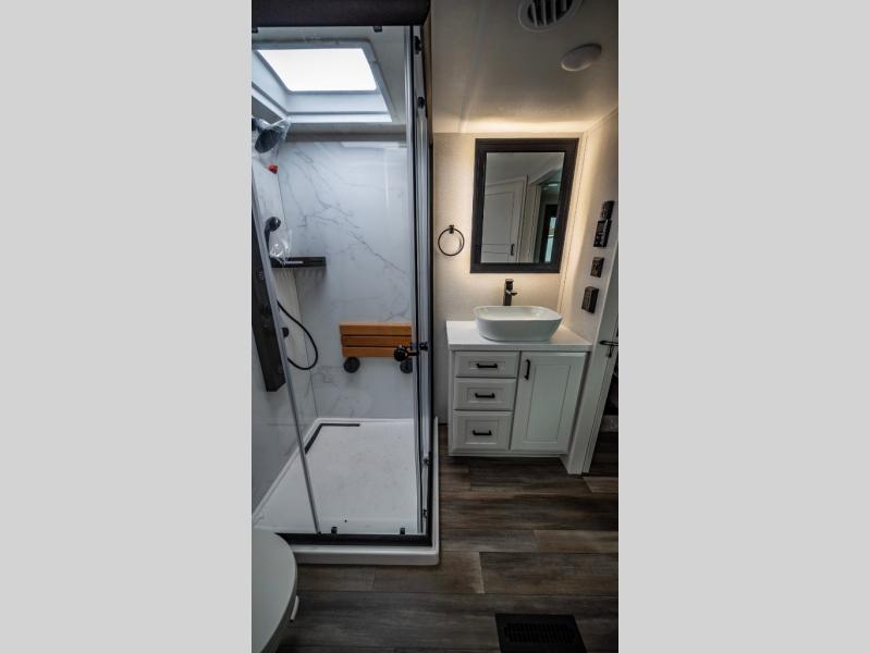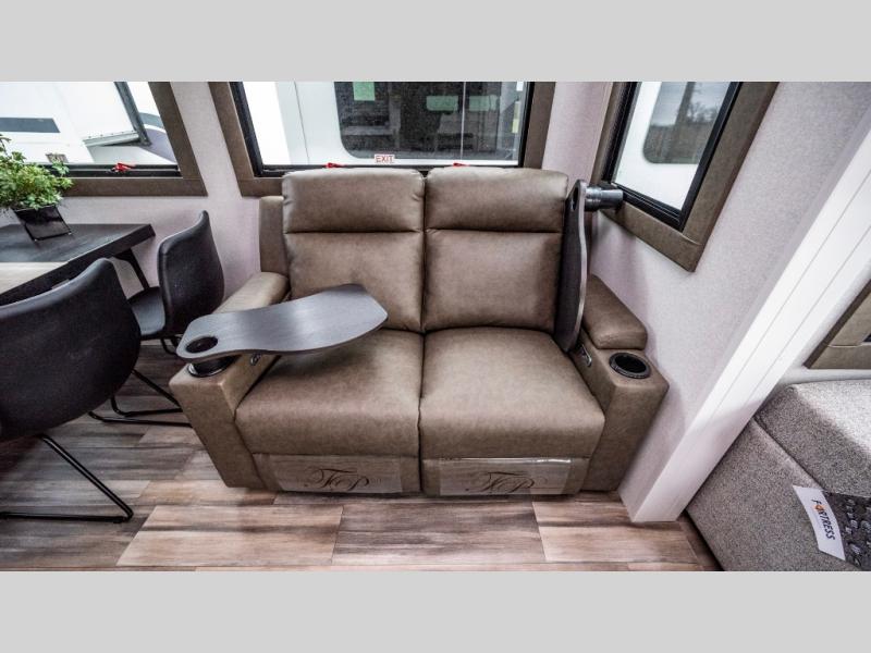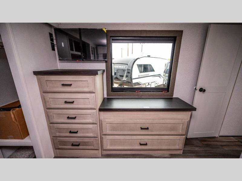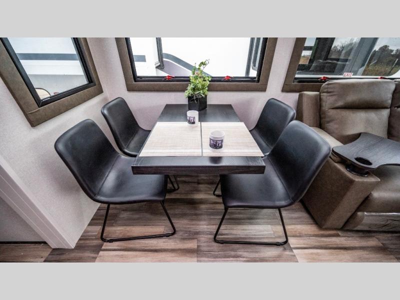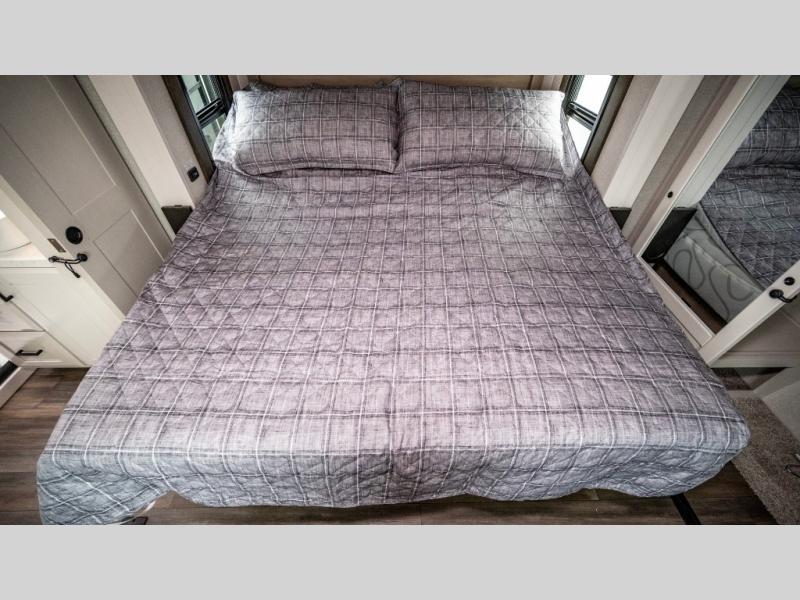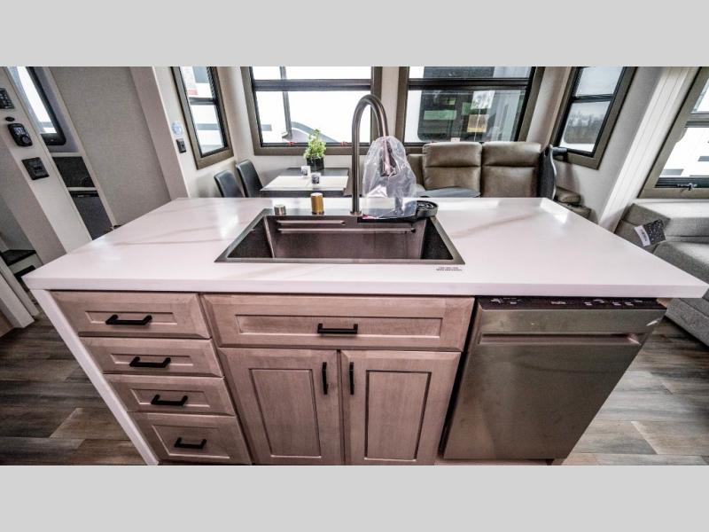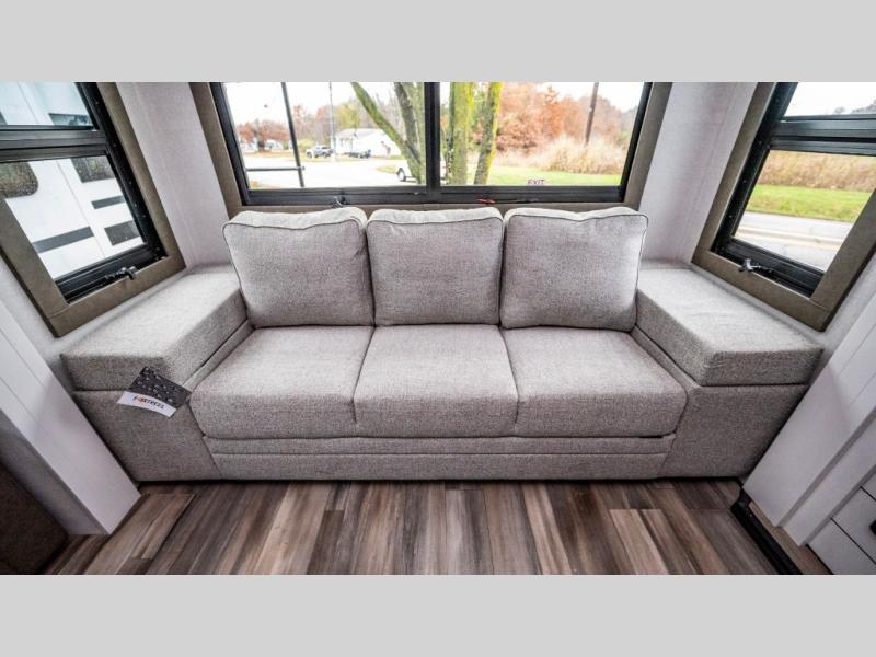 The Open Range 3X Luxury Fifth Wheel prioritizes the customer experience, offering residential living and exceptional construction quality. The 3X maximizes the space in the RV, without adding the weight. This fifth wheel has a 102-inch wide body and 84-inch tall by 42-inch deep main sliderooms, paired with the ACCU-SLIDE™ Slide System. The walls are 2.625-inches thick with a vapor barrier between the aluminum framing, providing 50% more insulation. The 3X is built with our well-known PVC Roofing Membrane, which is heat resistant and ensures durability. Pairing this construction with three 15,000 BTU A/C’s, ducted with quiet return systems, creates a comfortable indoor climate on those hot summer days. This Open Range 3X Luxury Fifth Wheel is enhanced by the inclusion of a GE Profile™ Kitchen Appliance Package, complete with a microwave, 21cu.ft. residential refrigerator, featuring an ice and water dispenser, a residential-style oven with a 4-burner range. Enjoy the luxury feel with our 9" soft/firm reversible mattress, providing the flexibility of comfort for your personalized sleeping experience. Control your fifth wheel with ease using the TravelLINK® System, accessible right from your phone or tablet, for added convenience. Another smart feature is the hands-free VoiceLINK™ Control System, responding to your voice commands. Embrace the Open Range 3X Luxury Fifth Wheel, worry-free with our full-time RVing warranty, reassuring you of the commitment to quality and longevity of your fifth wheel.