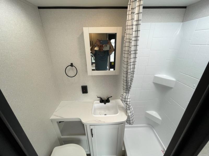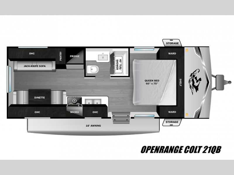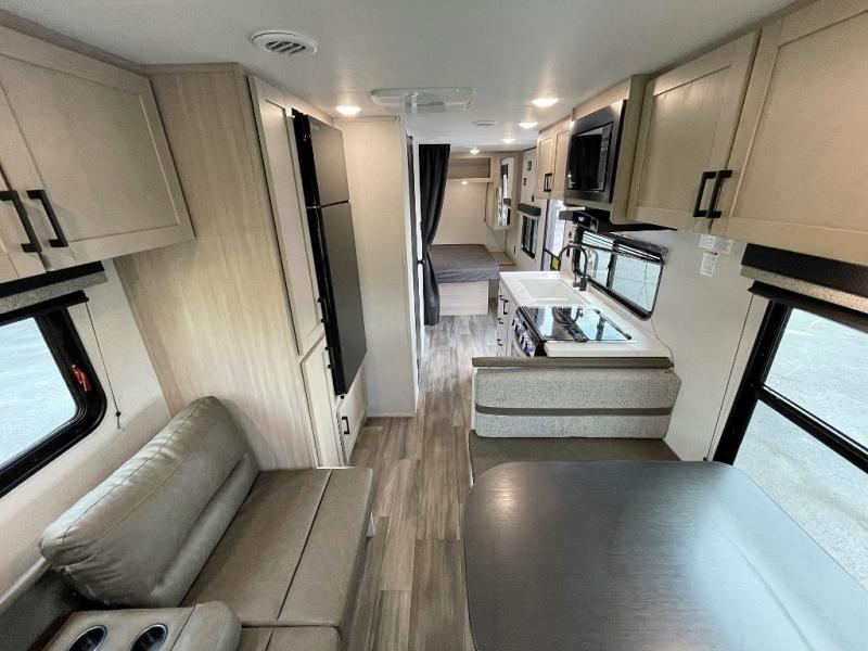 Step inside the Open Range Colt 21QB and be welcomed by a cozy living space that maximizes every inch for your convenience and enjoyment. The well-appointed interior features a versatile kitchenette equipped with modern appliances, allowing you to whip up your favorite meals wherever the road takes you. The cleverly designed floor plan includes a comfortable sleeping area, ensuring you get a restful night's sleep after a day of adventure. Thoughtful storage solutions abound, making it easy to bring along all your travel essentials without cluttering your living space.