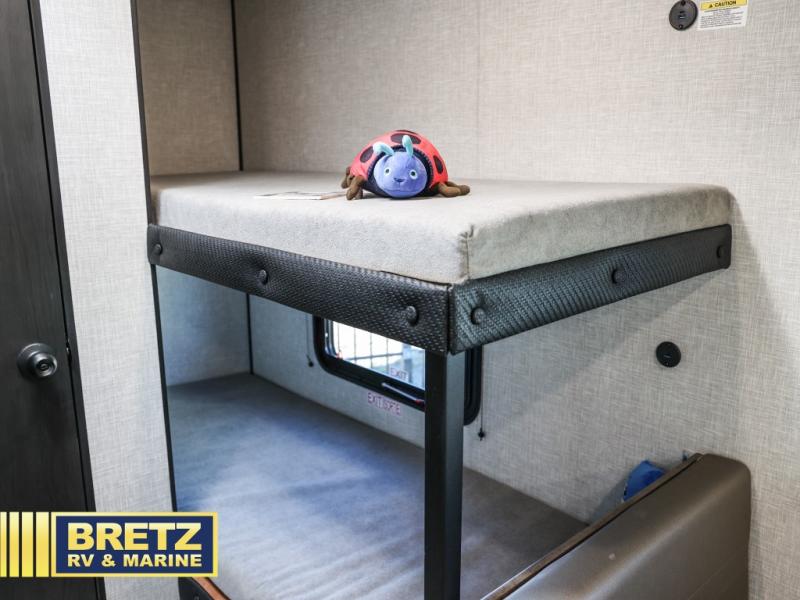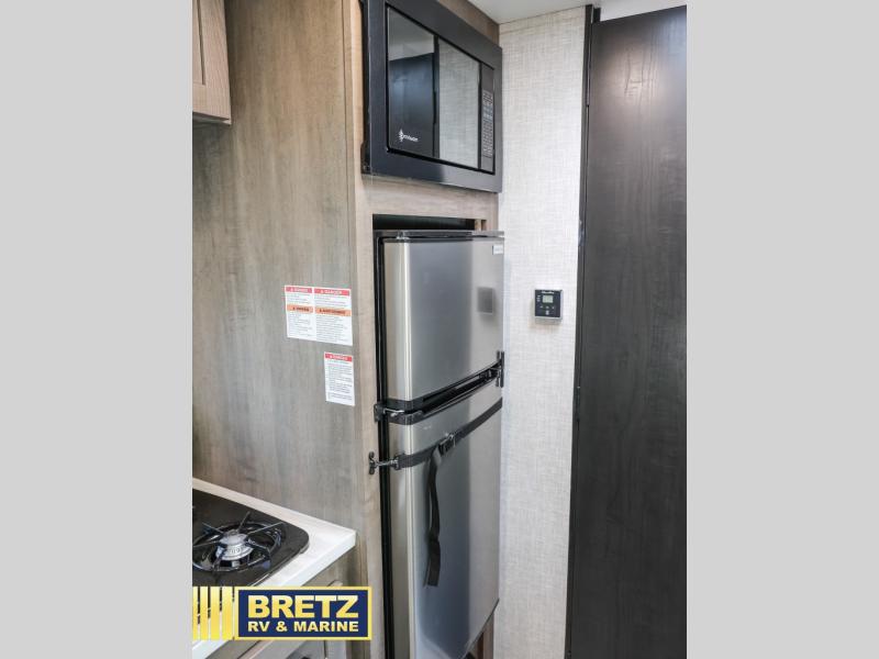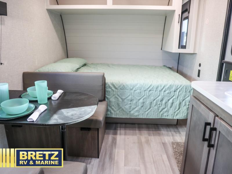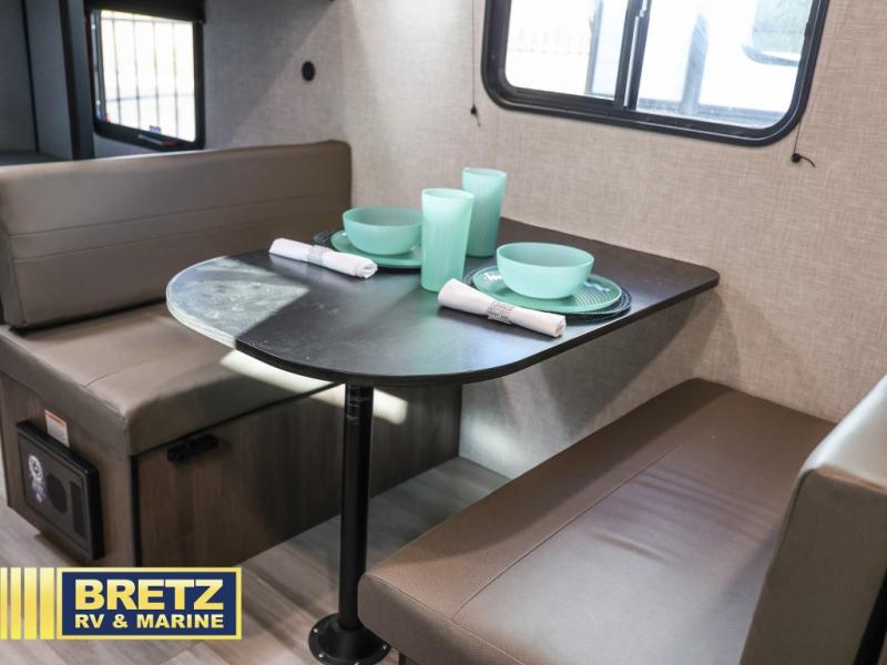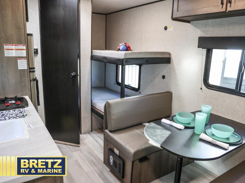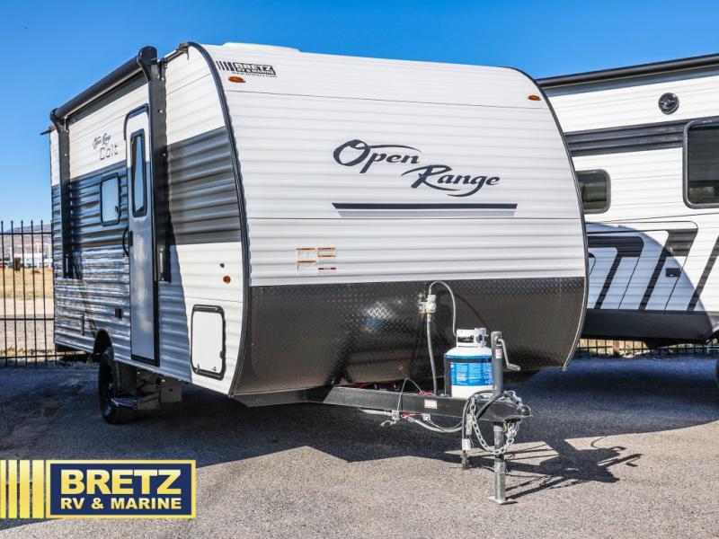This Open Range Conventional COLT travel trailer is perfect for all your camping needs. There is a front queen bed and bunks beds for sleeping space, plus a booth dinette that will double as both dining and sleeping space for a guest or two little ones. A full kitchen includes a two burner cooktop and microwave to make meals each day, and the private bath with a tub/shower will make it easier than ever to wash up after a day outdoors.