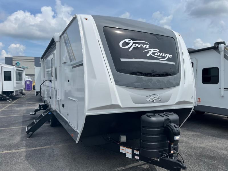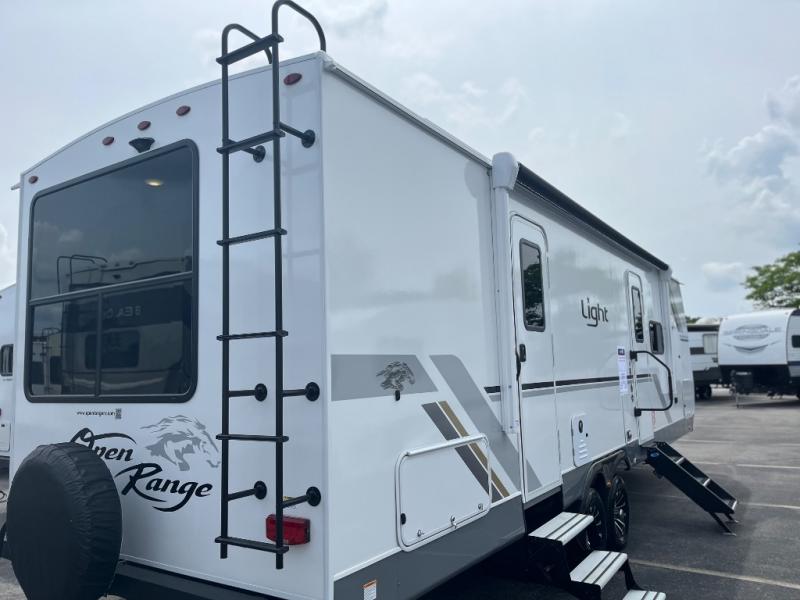 With every Open Range RV Open Range Light travel trailer by Highland Ridge there is a class leading l-beam chassis, and each includes TuffShell vacuumed bonded and laminated construction, reinforced with heavy duty fiberglass, and welded aluminum frames, plus Thermal Seal which includes an enclosed, insulated and heated underbelly and a fully insulated roof with PVC roofing membrane for four seasons of camping. Inside you will love the look of the hardwood cabinet doors, beautiful Coastal Linen decor, and residential vinyl flooring throughout making each RV pet and kid friendly. And don't forget about the TravelLink which is Bluetooth control of slides, lighting, awnings, cooling and more making setup easy. There are many more features included in each Light, start your lightweight adventure today!