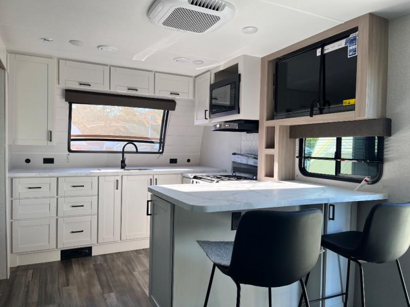 With every Open Range RV Open Range Light travel trailer by Highland Ridge there is a class leading l-beam chassis, and each includes TuffShell vacuumed bonded and laminated construction, reinforced with heavy duty fiberglass, and welded aluminum frames, plus Thermal Seal which includes an enclosed, insulated and heated underbelly and a fully insulated roof with PVC roofing membrane for four seasons of camping. Inside you will love the look of the hardwood cabinet doors, beautiful Coastal Linen decor, and residential vinyl flooring throughout making each RV pet and kid friendly. And don't forget about the TravelLink which is Bluetooth control of slides, lighting, awnings, cooling and more making setup easy. There are many more features included in each Light, start your lightweight adventure today!