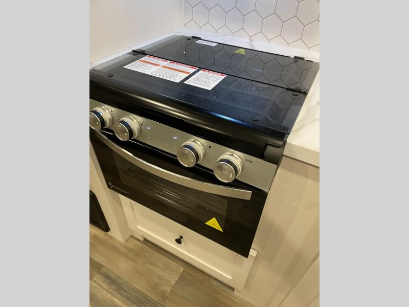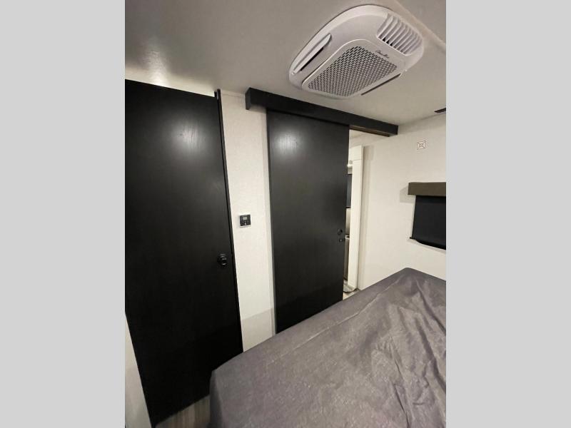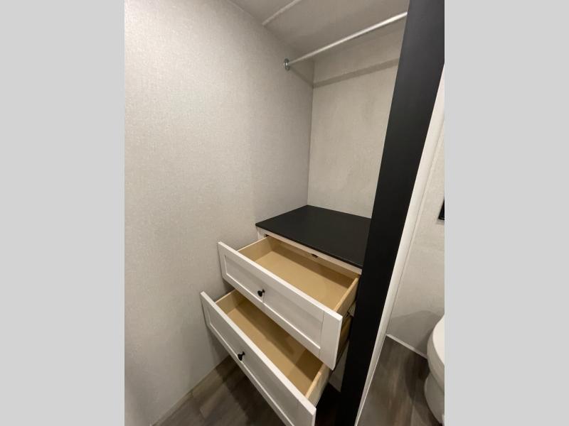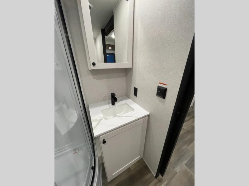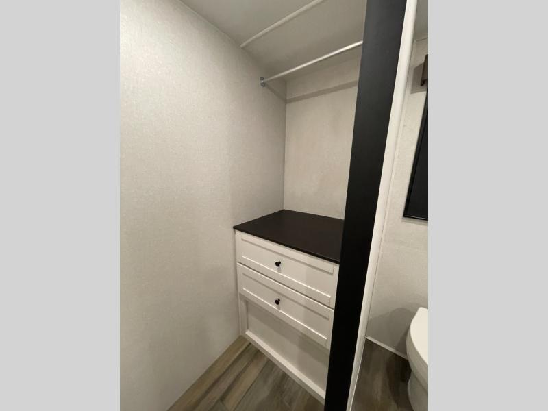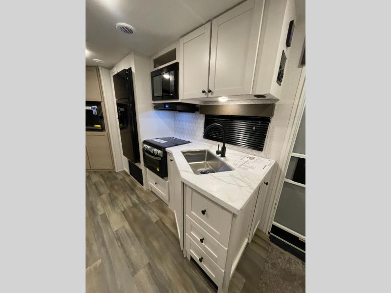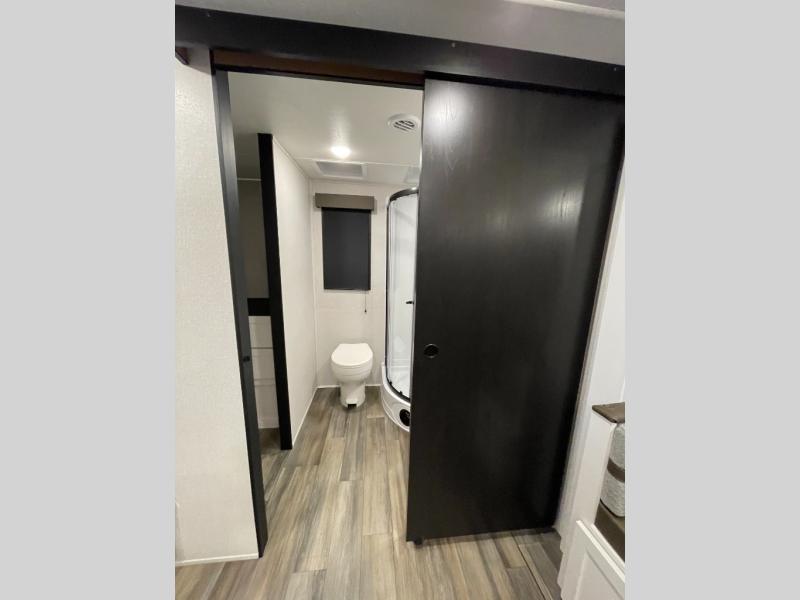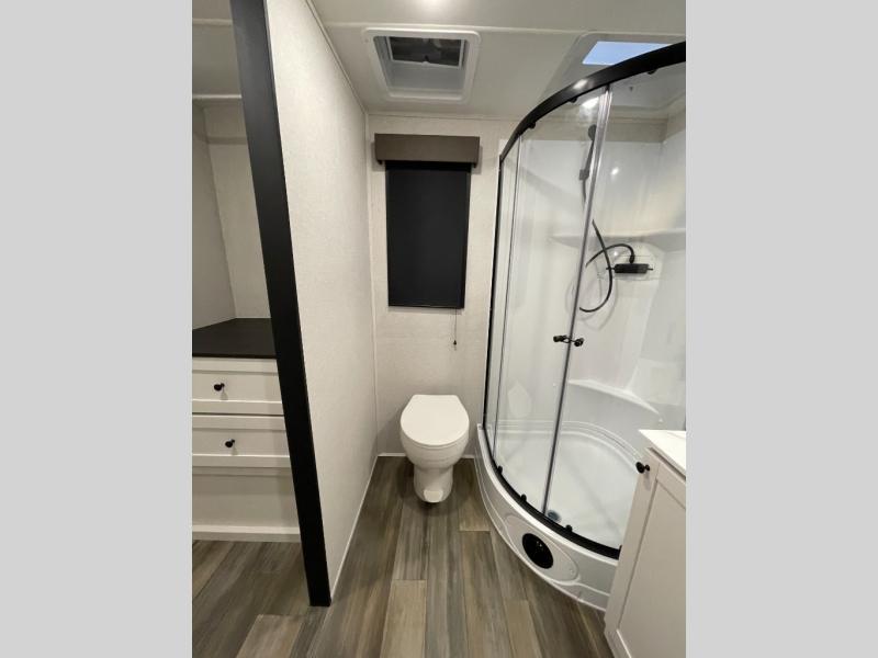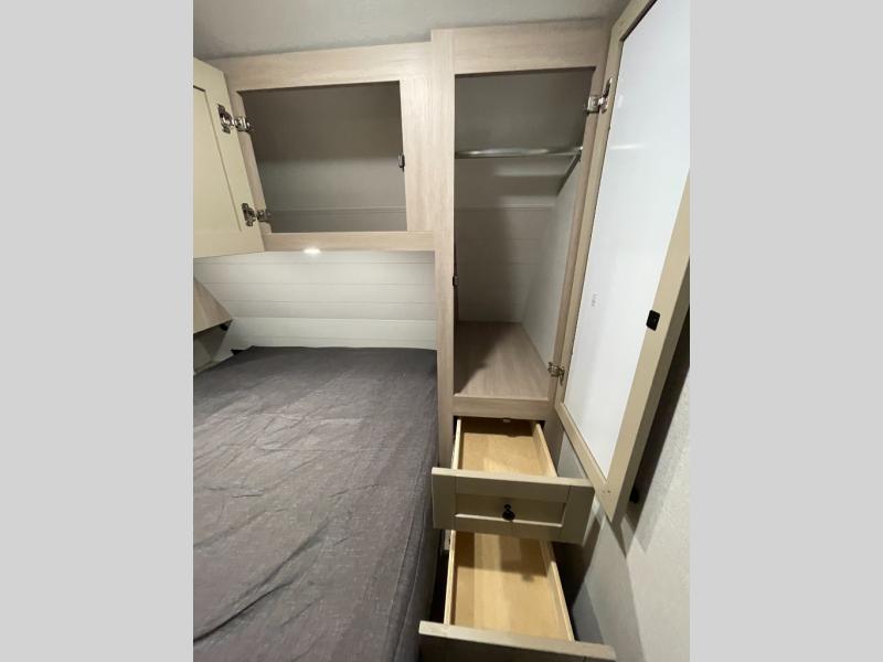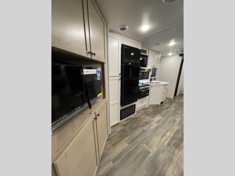 You will love all that this travel trailer has to offer! From the dual entry doors to the full rear bathroom with a radius shower and a large walk-in closet to keep your linens close. Prepare your best meals with the three burner cooktop and 17" oven then enjoy them at the U-shaped dinette and play a card game after dinner or you can relax on the tri-fold sofa and watch your favorite movie on the smart HDTV. The front private bedroom has a queen bed, wardrobes on either side for your hang up clothes, and even an entrance/exit door to quietly slip out for a quick fishing trip in the early mornings!