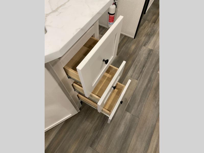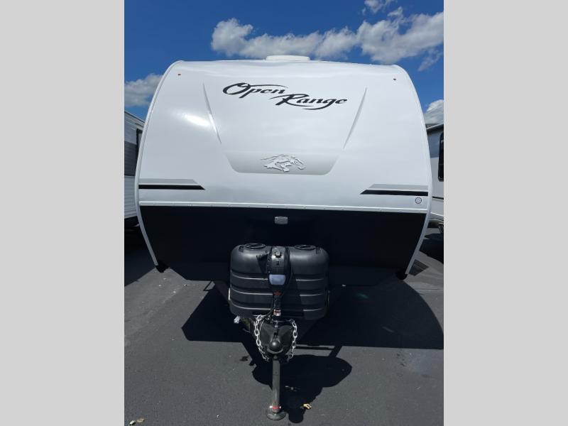 Each one of these Highland Ridge RV Range Lite travel trailers maximize their interior space while staying lightweight thanks to the TuffShell fiberglass walls! The residential floor slides create more interior space, and the residential vinyl flooring throughout makes them kid and pet friendly. A few construction features you will appreciate include a fully-walkable roof, a thermal seal which means the underbelly is enclosed, heated, and insulated, and a fully insulated roof with a PVC roofing membrane. Plus, there is an exterior grill hookup quick connect port, self-adjusting electric brakes to help you safely arrive, and an oversized pass-through storage area with motion lighting. Each model also includes the Xtend Solar I Package with a 200 watt solar panel with a 30 amp solar controller so boondocking is easier than ever.