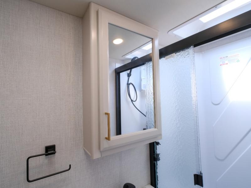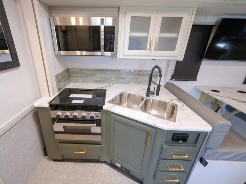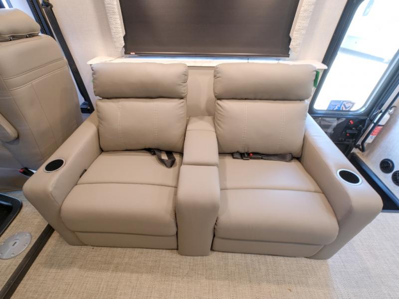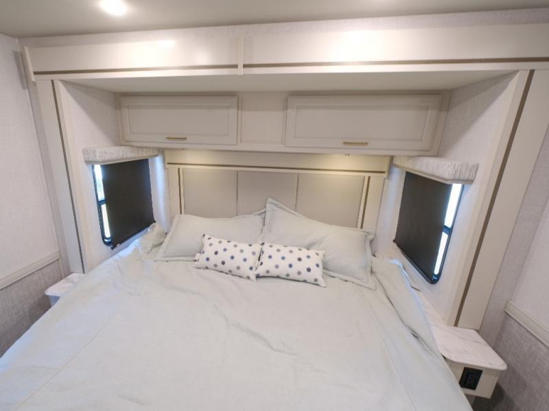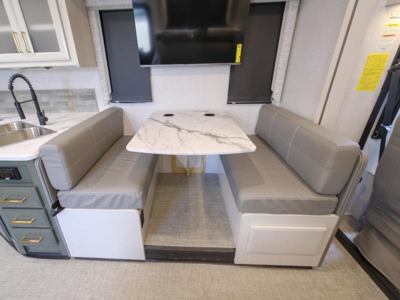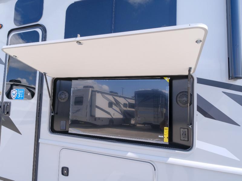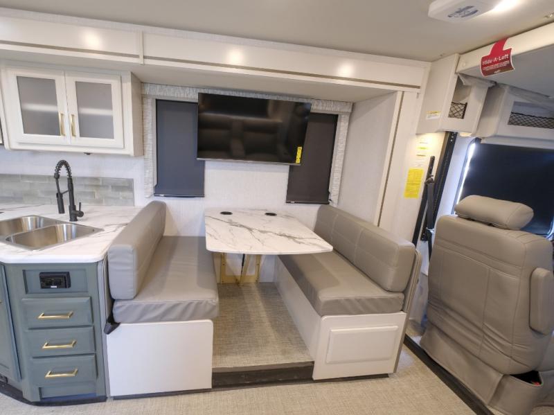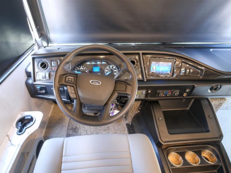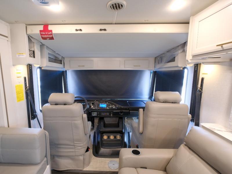 Enjoy a home on wheels with this motorhome! It features a rear corner private bedroom with a Serenity Series 72" x 74" king bed slide to lay your head at night and an LED TV for a comfortable movie night. The Hide-A-Loft drop down electric bed is another comfortable place to two others to sleep. You can even convert the Dream Dinette when you're not using it to enjoy a meal or play a card game. Everyone can freshen up in the rear corner bathroom with the 34" x 22" shower with a skylight above for natural lighting. A few cab conveniences that will make your traveling go smoother include an automotive style dash with work station, electronic cruise control, and a Sony stereo with AM/FM/Bluetooth and a backup camera screen!