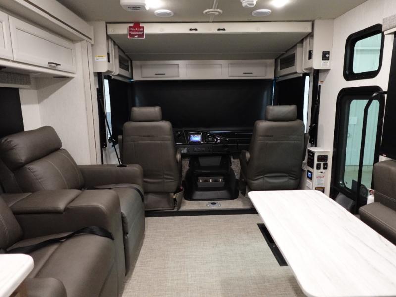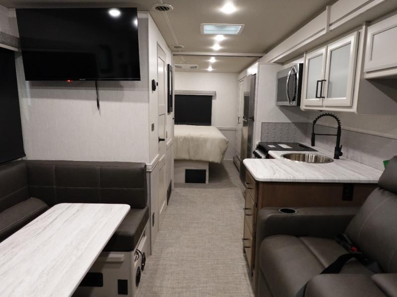 Take the grandkids or a few friends on a road trip of a lifetime with this motorhome! The Hide-A-Loft drop down electric bed is big enough for two to sleep on. There is even a rear private bedroom with a Serenity Series 72" x 75" king bed across from a wardrobe and a dresser with a LED TV. The chef can prepare their best meals either inside with the three burner cooktop or breathe in some fresh air while cooking at the exterior kitchenette. You can even watch the big game outside with the exterior entertainment center with a LED TV. Enjoy your meals at the L-shaped dinette with an LED TV next to it and freshen up in the full bathroom with the 34" x 22" shower with a skylight above for natural lighting!