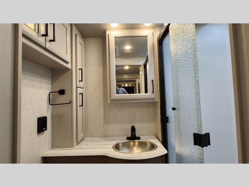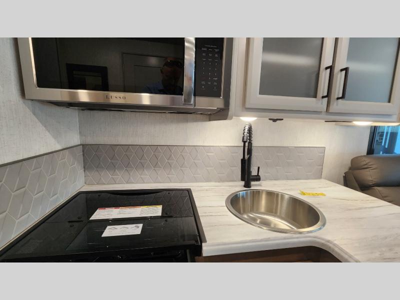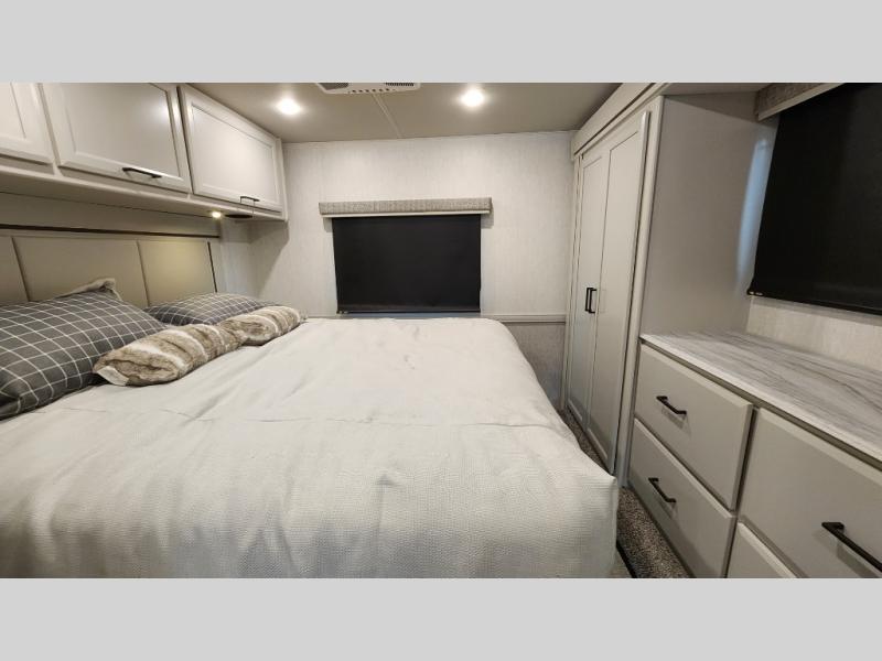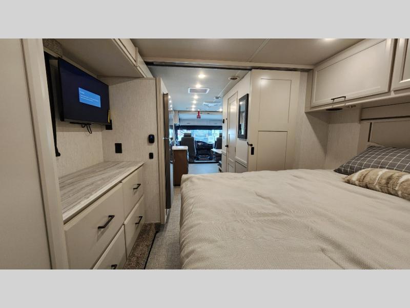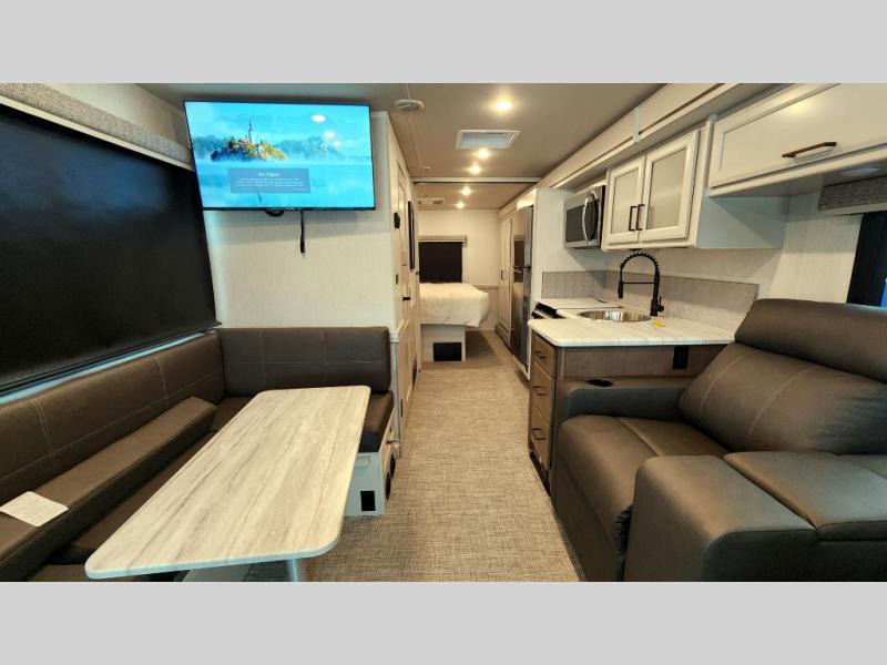 Take the grandkids or a few friends on a road trip of a lifetime with this motorhome! The Hide-A-Loft drop down electric bed is big enough for two to sleep on and the jackknife sofa can transform into a sleeping space too. There is even a rear private bedroom with a Serenity Series 72" x 75" king bed across from a wardrobe and a dresser with a LED TV. The chef can prepare their best meals either inside with the three burner cooktop or breathe in some fresh air while cooking at the exterior kitchenette. You can even watch the big game outside with the exterior entertainment center with a LED TV. Enjoy your meals at the L-shaped dinette with an LED TV next to it and freshen up in the full bathroom with the 34" x 22" shower with a skylight above for natural lighting!