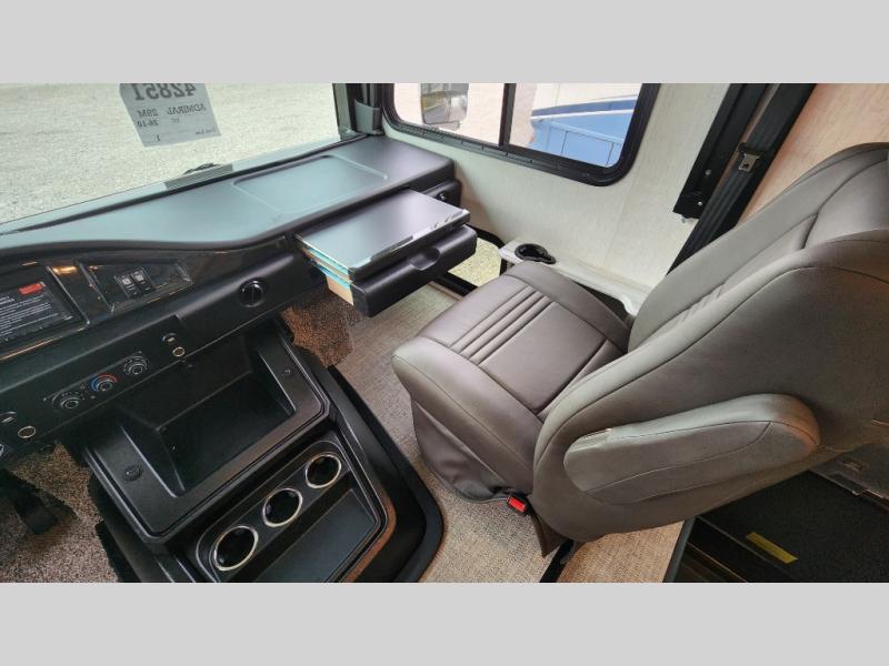 Enter the world of luxury travel with any one of these Holiday Rambler Admiral Class A gas motorhomes! Settle in with the four point fully automatic hydraulic leveling jacks and store all of your gear in the exterior pass-through storage. An automotive, bonded one-piece windshield gives you a clear view of your surroundings, an aerodynamic front cap with hood creates better gas mileage, and automotive headlights help you to see clearly at night. The all new electronic instrument panel lets you control parts of your unit at the touch of a finger. A ducted A/C system will keep you cool on those hot summer days and the power ceiling vents will rid your unit of any unwanted air. You will have plenty of entertainment with the exterior LED TV, the interior TV, and the Sony stereo with AM/FM/Bluetooth. Come find your perfect model today!