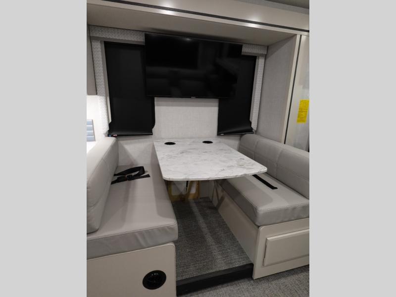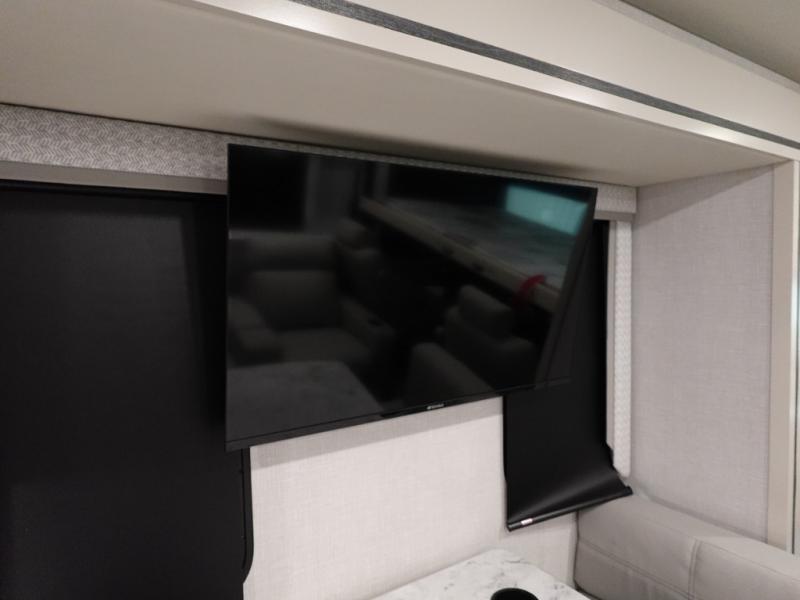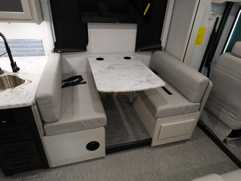 It's a clean decision to take this motorhome out on your adventures with a bath and a half! The full rear bathroom has a 30" x 36" shower to freshen up in each morning and creates a master suite by connecting to the private bedroom which has a Serenity Series king bed slide across from a wardrobe and dresser with an LED TV to watch movies in true comfort. The half bathroom is conveniently located by the fully equipped kitchen so you can take a bathroom break without worrying about your food cooking on the three burner cooktop. Enjoy your delicious meals on the Dream Dinette then relax on the jackknife sofa or head outside to watch the big game at the exterior entertainment center with LED TV. You even have exterior storage space to bring along all of your essentials!