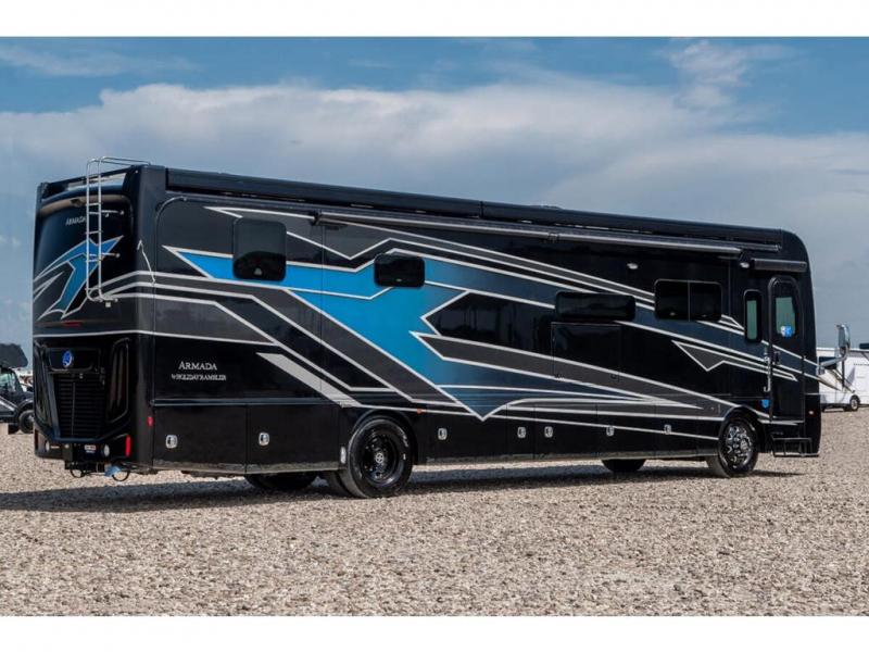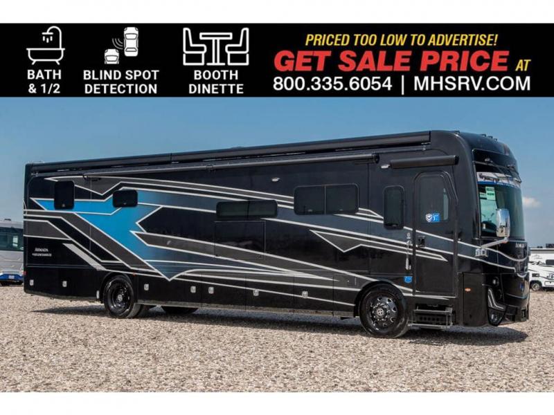 MSRP $607,173. New 2026 Holiday Rambler Armada 40M Bath & 1/2 for sale at Motor Home Specialist; the #1 Volume Selling Motor Home Dealership in the World. This Beautiful RV is approximately 40 feet 1 inches in length and features 3 slides including a full-wall slide, king bed, fireplace, Cummins L9 diesel engine, Freightliner Freedom Bridge Custom Chassis, Allison 3000 MH transmission, tire pressure monitoring system, heated fresh water and holding tank compartments, molded-fiberglass one-piece roof, automatic hydraulic leveling jacks, 7-way round tow connection, automotive one piece windshield and large living area. This exclusive RV features the optional Blackout package, roof mounted patio awning, drop down twin bed, technology package, heated tile floor in the rear, exterior freezer, motion power lounge, blind spot detection, AC's with condensation pump, Mid-Ship LED TV, second full bay slide out tray, satellite dish winegard, booth dinette & window awning package. **Unit Not California CARB Compliant and Cannot be Registered in California**. Shop a huge selection of luxury diesel pusher motorhomes all at 1 location! Choose from American Coach Eagle – Dream – Entegra Coach Cornerstone – Anthem – Aspire – Fleetwood Palisade – Discovery LXE – Holiday Rambler Armada – Foretravel Realm – Foretravel Realm Presidential and more. We also buy and sell quality pre-owned models such Newmar King Aire – Essex – London Aire – Mountain Aire – Dutch Star - Tiffin Zephyr – Allegro Bus – Phaeton – Prevost Liberty Lady – Millennium - Marathon – Newell and much more. Visit MHSRV.com for our complete line-up and the sale prices that have made us the #1 volume selling motor home dealership in the world 12 years in a row! For additional details on this unit and our entire inventory including brochures, window sticker, videos, photos, reviews & testimonials as well as additional information about Motor Home Specialist and our manufacturers please visit us at MHSRV.com or call 800-335-6054. At Motor Home Specialist, we DO NOT charge any prep or orientation fees like you will find at other dealerships. All sale prices include a 200-point inspection, interior & exterior wash, detail service and a fully automated high-pressure rain booth test and coach wash that is a standout service unlike that of any other in the industry. You will also receive a thorough coach orientation with an MHSRV technician, a night stay in our delivery park featuring landscaped and covered pads with full hook-ups and much more! Read Thousands upon Thousands of 5-Star Reviews at MHSRV.com and See What They Had to Say About Their Experience at Motor Home Specialist. WHY PAY MORE? WHY SETTLE FOR LESS?