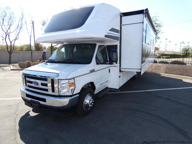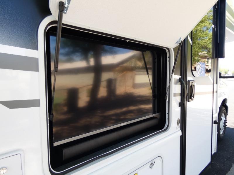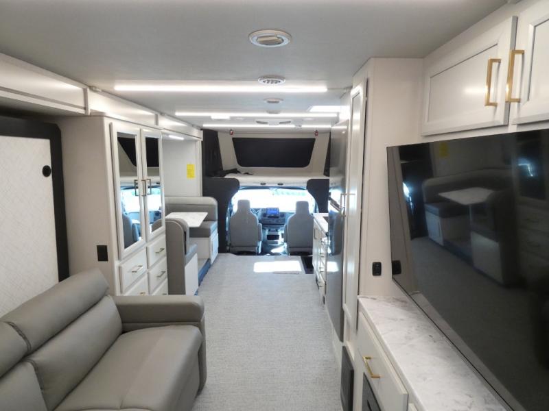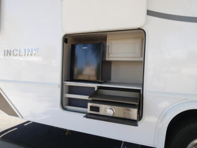 With any Incline Class C gas motorhome by Holiday Rambler, you will enjoy unrivaled performance, unbeatable storage, and luxury at every turn! You will love the journey just as much as the destination with reclining back and swivel captain's chairs and side view cameras, plus there is a Ford 7.3L V8 engine for power you can feel. Each model features painted steel frame construction with a Powerlock System ll that interlocks the walls to the roof for added durability, along with Vacu-Bond aluminum framed sidewalls, roof, and floor. Outside, you'll find automatic hydraulic leveling jacks, patio lighting, slam latch luggage door handles, and a Winegard Air 360+ that will allow you to stay connected as you travel. Head inside to find Surf-X countertops, slide out fascia with coordinating interior wood color, hidden hinge cabinet doors, kitchen backsplash, and many more comforts!