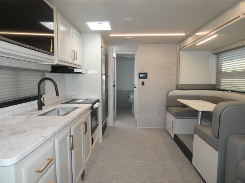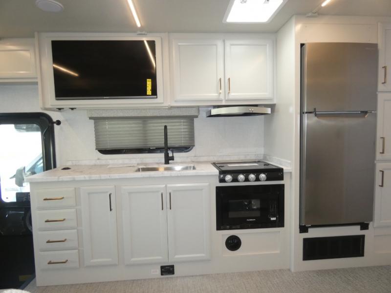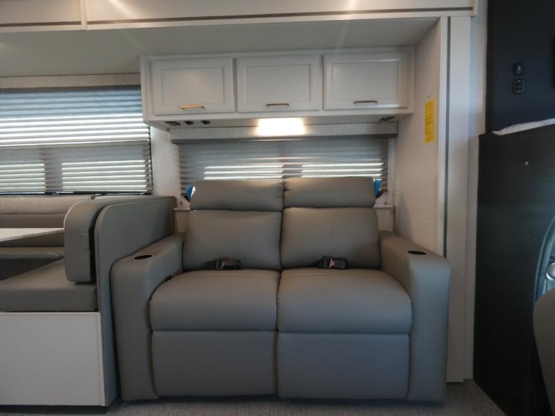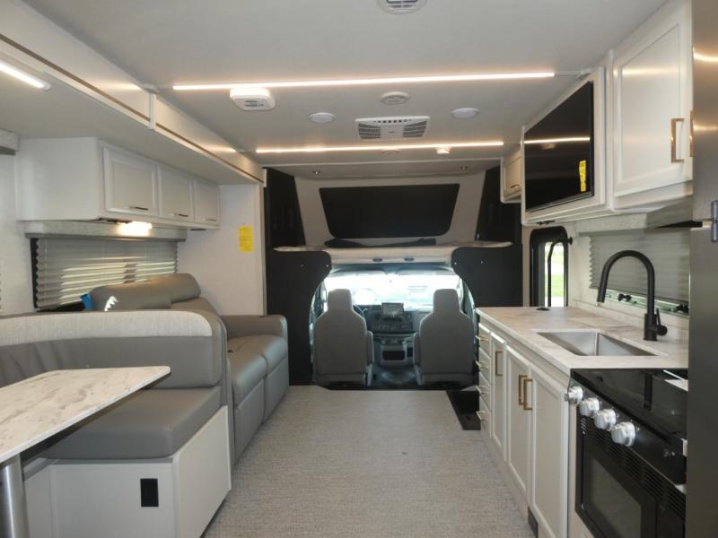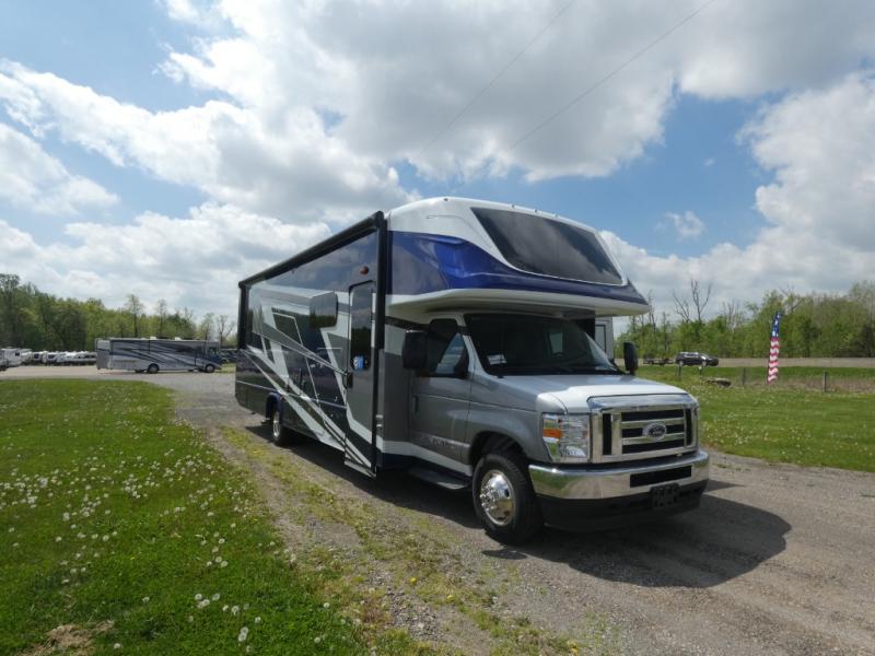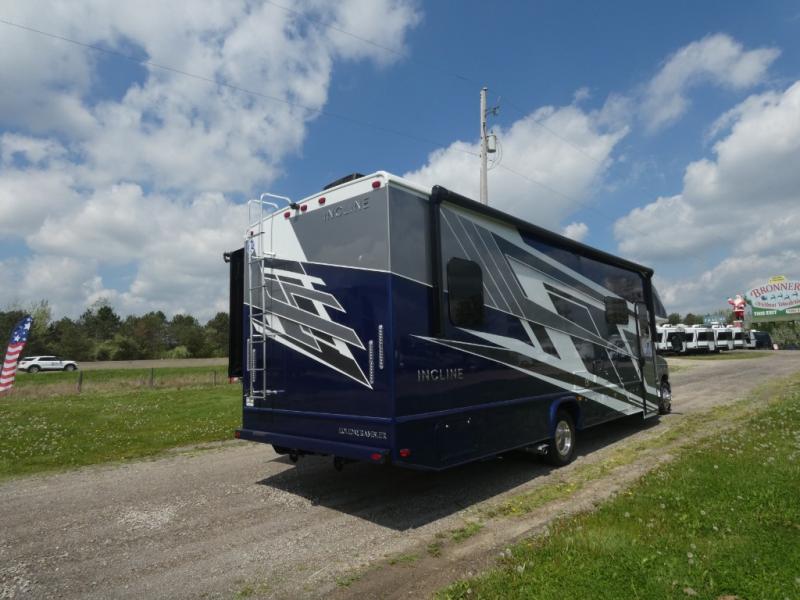 With any Incline Class C gas motorhome by Holiday Rambler, you will enjoy unrivaled performance, unbeatable storage, and luxury at every turn! You will love the journey just as much as the destination with reclining back and swivel captain's chairs and side view cameras, plus there is a Ford 7.3L V8 engine for power you can feel. Each model features painted steel frame construction with a Powerlock System ll that interlocks the walls to the roof for added durability, along with Vacu-Bond aluminum framed sidewalls, roof, and floor. Outside, you'll find automatic hydraulic leveling jacks, patio lighting, slam latch luggage door handles, and a Winegard Air 360+ that will allow you to stay connected as you travel. Head inside to find Surf-X countertops, slide out fascia with coordinating interior wood color, hidden hinge cabinet doors, kitchen backsplash, and many more comforts!