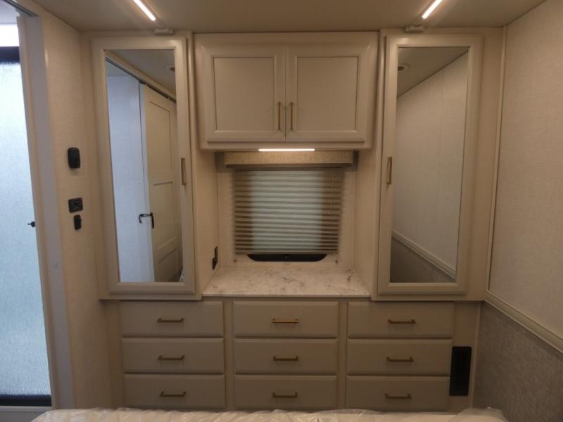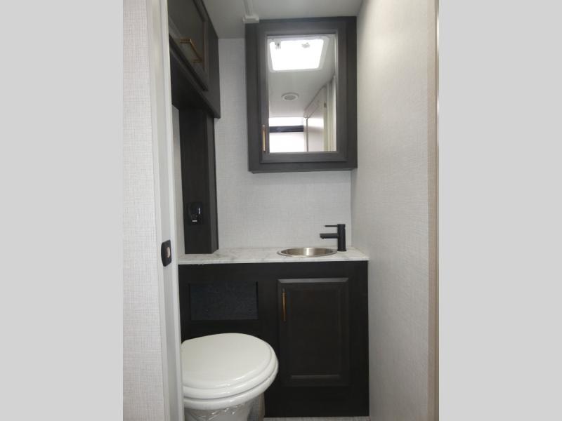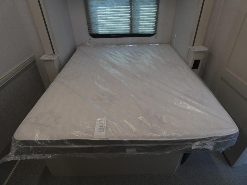 This double slide out coach is perfect for weekend excursions or extended stays! You will love having your own private bedroom in the back with a queen bed slide out and a wardrobe to keep your things organized. The private toilet and sink is right across the hall from the shower, so two people can freshen up at once. While the chef of your group is making lunch on the three burner range/convection microwave combo, the others can visit around the U-shaped dinette or relax on the sofa. These pieces of furniture will also double as additional sleeping space for guests, along with the overhead bunk!