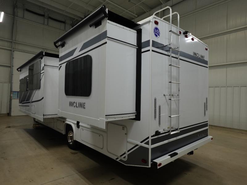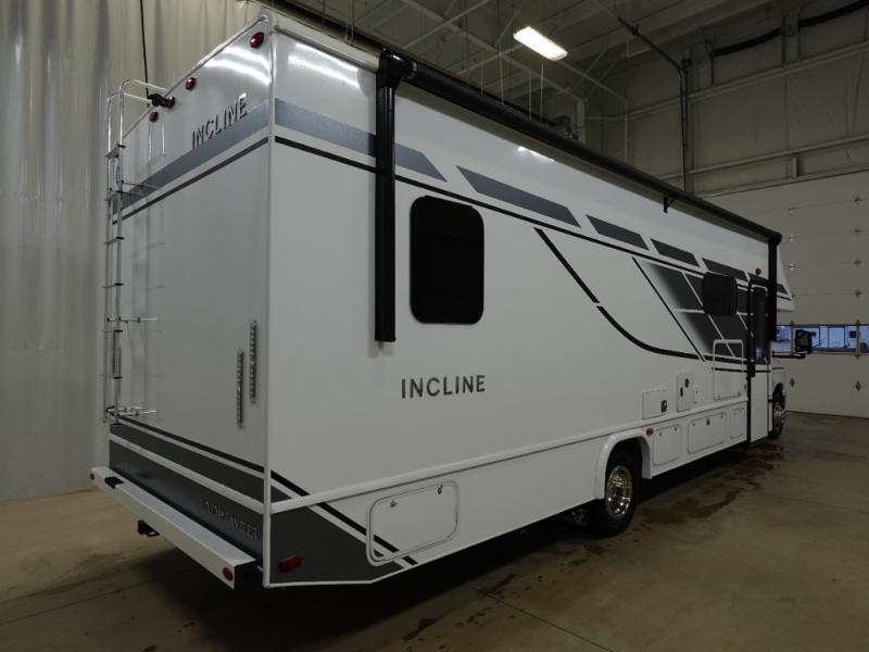 With any Incline Class C gas motorhome by Holiday Rambler, you will enjoy unrivaled performance, unbeatable storage, and luxury at every turn! You will love the journey just as much as the destination with reclining back and swivel captain's chairs and side view cameras, plus there is a Ford 7.3L V8 engine for power you can feel. Each model features painted steel frame construction with a Powerlock System ll that interlocks the walls to the roof for added durability, along with Vacu-Bond aluminum framed sidewalls, roof, and floor. Outside, you'll find automatic hydraulic leveling jacks, patio lighting, slam latch luggage door handles, and a Winegard Air 360+ that will allow you to stay connected as you travel. Head inside to find Surf-X countertops, slide out fascia with coordinating interior wood color, hidden hinge cabinet doors, kitchen backsplash, and many more comforts!