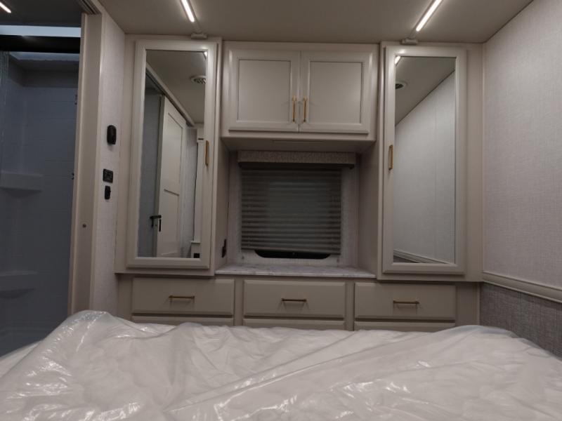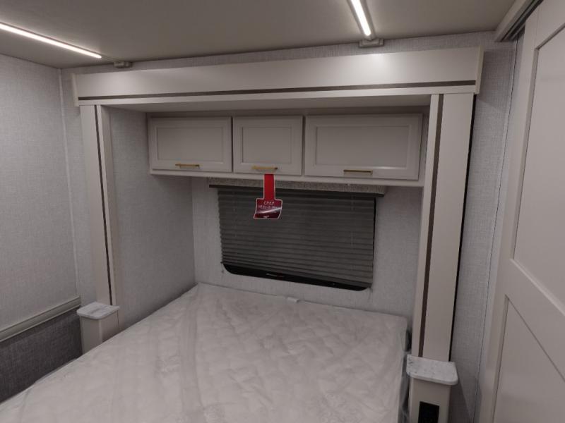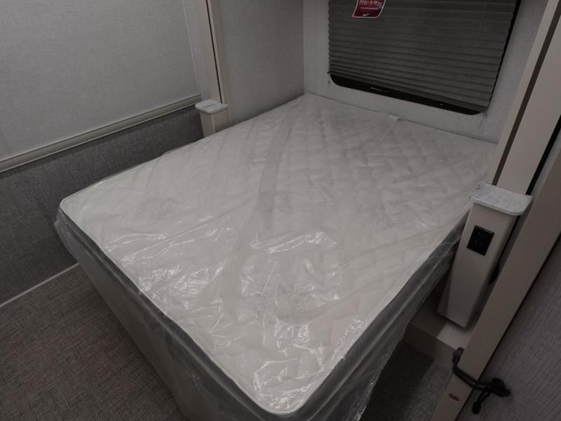 This double slide out coach is perfect for weekend excursions or extended stays! You will love having your own private bedroom in the back with a queen bed slide out and a wardrobe to keep your things organized. The private toilet and sink is right across the hall from the shower, so two people can freshen up at once. While the chef of your group is making lunch on the three burner range/convection microwave combo, the others can visit around the U-shaped dinette or relax on the sofa. These pieces of furniture will also double as additional sleeping space for guests, along with the overhead bunk!