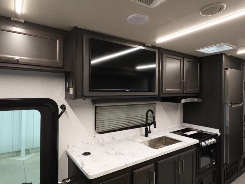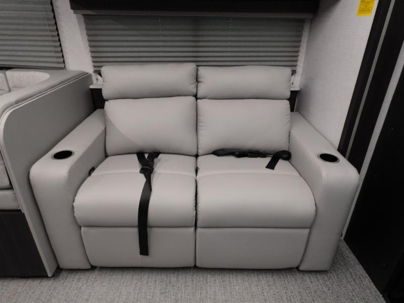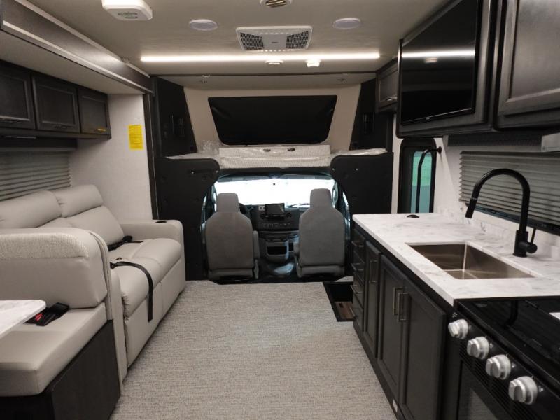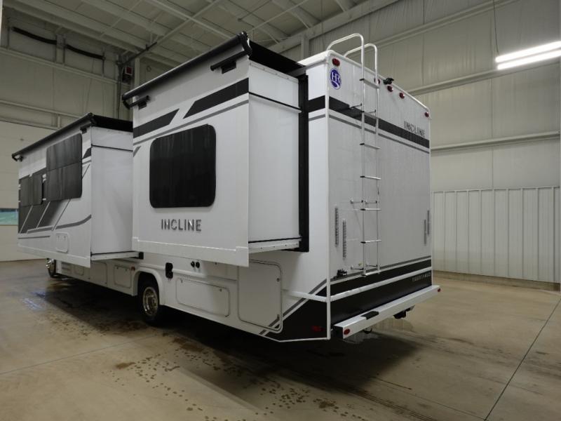 With any Incline Class C gas motorhome by Holiday Rambler, you will enjoy unrivaled performance, unbeatable storage, and luxury at every turn! You will love the journey just as much as the destination with reclining back and swivel captain's chairs and side view cameras, plus there is a Ford 7.3L V8 engine for power you can feel. Each model features painted steel frame construction with a Powerlock System ll that interlocks the walls to the roof for added durability, along with Vacu-Bond aluminum framed sidewalls, roof, and floor. Outside, you'll find automatic hydraulic leveling jacks, patio lighting, slam latch luggage door handles, and a Winegard Air 360+ that will allow you to stay connected as you travel. Head inside to find Surf-X countertops, slide out fascia with coordinating interior wood color, hidden hinge cabinet doors, kitchen backsplash, and many more comforts!