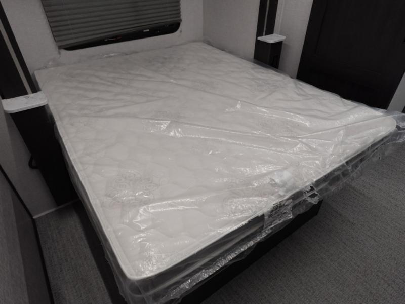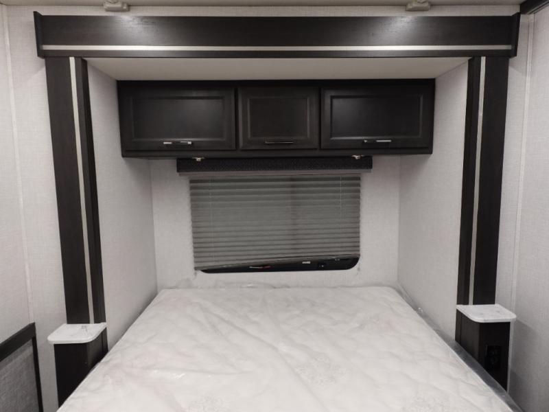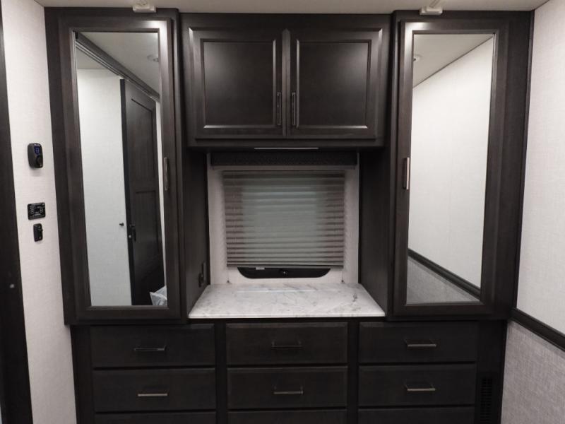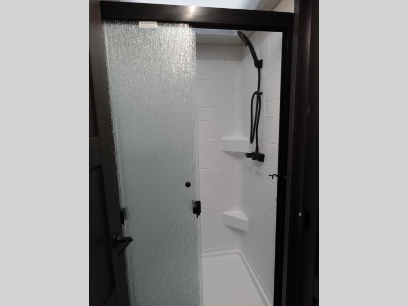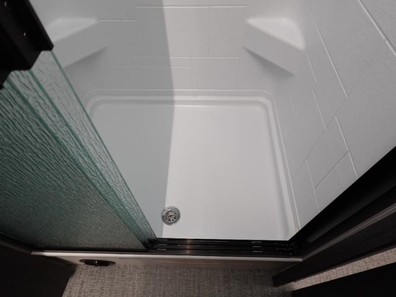 This double slide out coach is perfect for weekend excursions or extended stays! You will love having your own private bedroom in the back with a queen bed slide out and a wardrobe to keep your things organized. The private toilet and sink is right across the hall from the shower, so two people can freshen up at once. While the chef of your group is making lunch on the three burner range/convection microwave combo, the others can visit around the U-shaped dinette or relax on the sofa. These pieces of furniture will also double as additional sleeping space for guests, along with the overhead bunk!