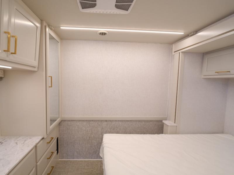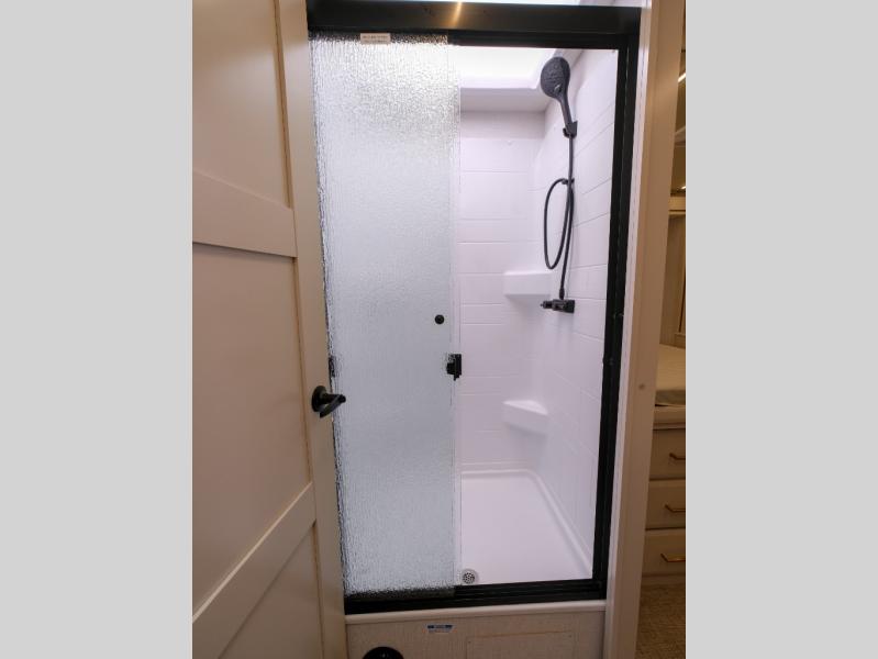This double slide out coach is perfect for weekend excursions or extended stays! You will love having your own private bedroom in the back with a queen bed slide out and a wardrobe to keep your things organized. The private toilet and sink is right across the hall from the shower, so two people can freshen up at once. While the chef of your group is making lunch on the three burner range/convection microwave combo, the others can visit around the U-shaped dinette or relax on the sofa. These pieces of furniture will also double as additional sleeping space for guests, along with the overhead bunk!