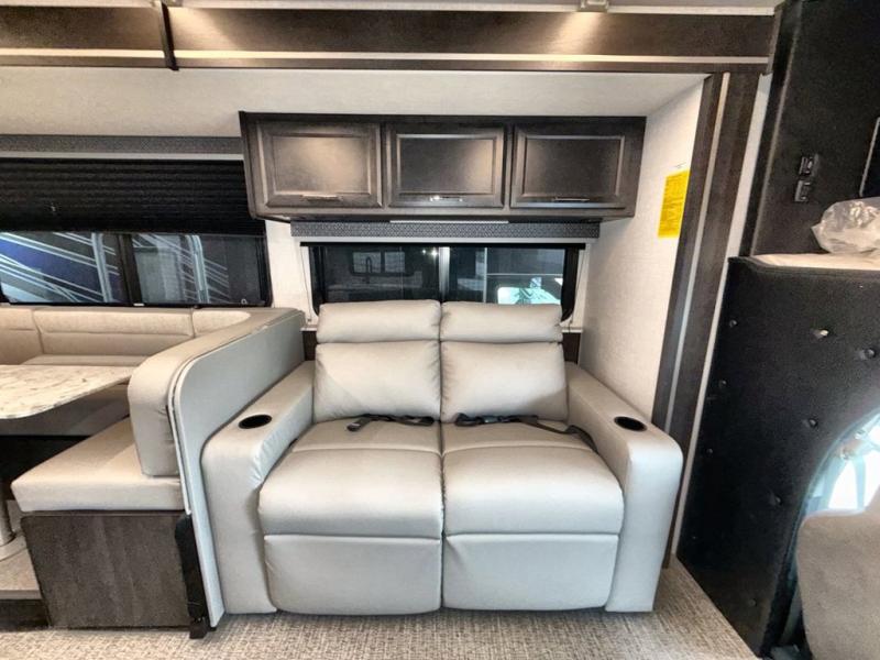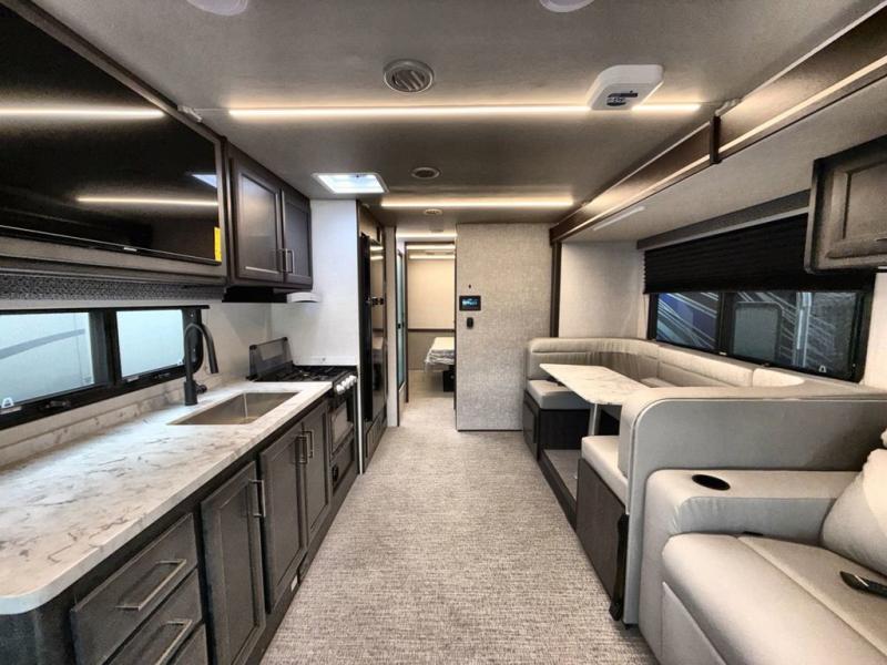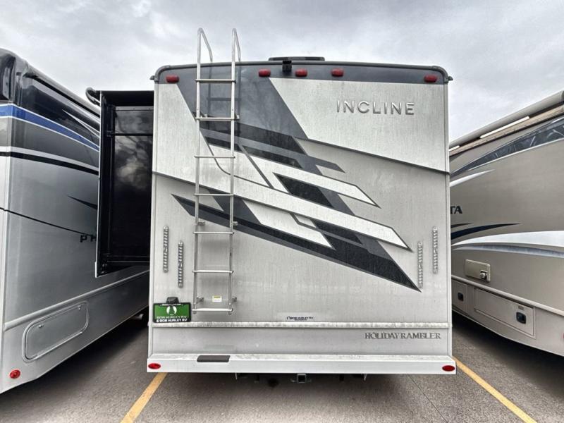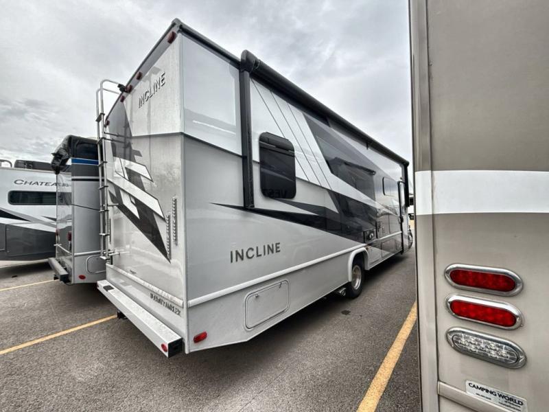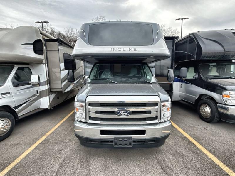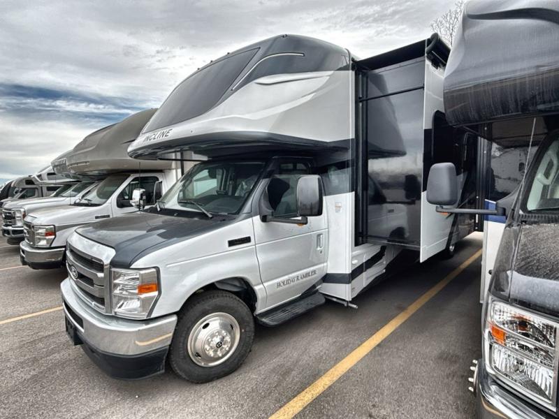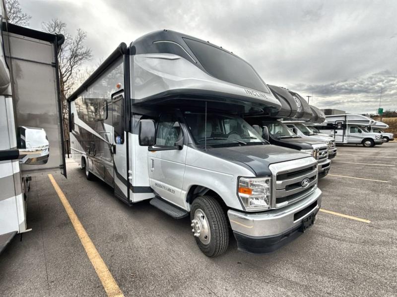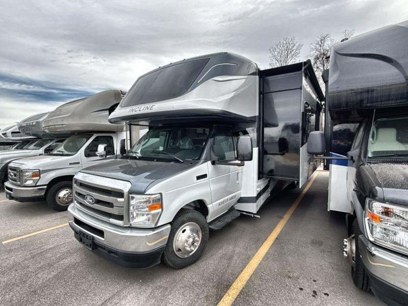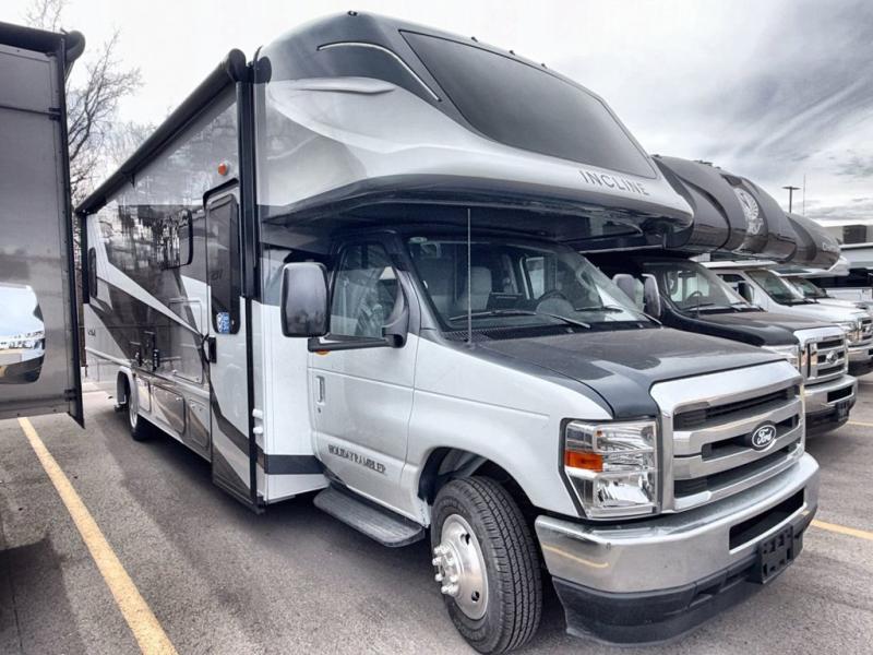 With any Incline Class C gas motorhome by Holiday Rambler, you will enjoy unrivaled performance, unbeatable storage, and luxury at every turn! You will love the journey just as much as the destination with reclining back and swivel captain's chairs and side view cameras, plus there is a Ford 7.3L V8 engine for power you can feel. Each model features painted steel frame construction with a Powerlock System ll that interlocks the walls to the roof for added durability, along with Vacu-Bond aluminum framed sidewalls, roof, and floor. Outside, you'll find automatic hydraulic leveling jacks, patio lighting, slam latch luggage door handles, and a Winegard Air 360+ that will allow you to stay connected as you travel. Head inside to find Surf-X countertops, slide out fascia with coordinating interior wood color, hidden hinge cabinet doors, kitchen backsplash, and many more comforts!