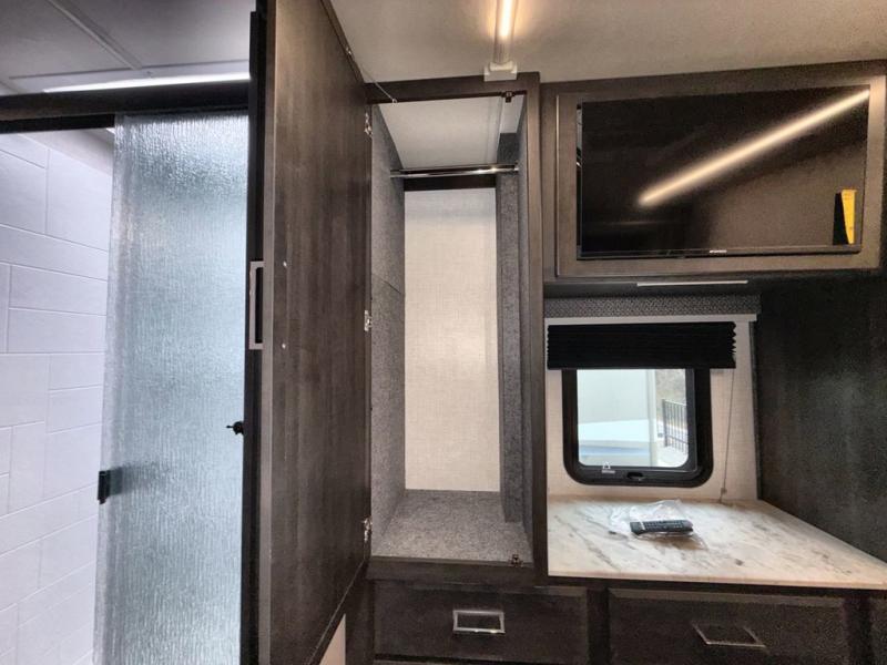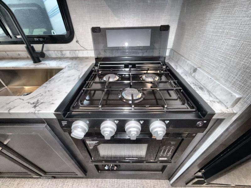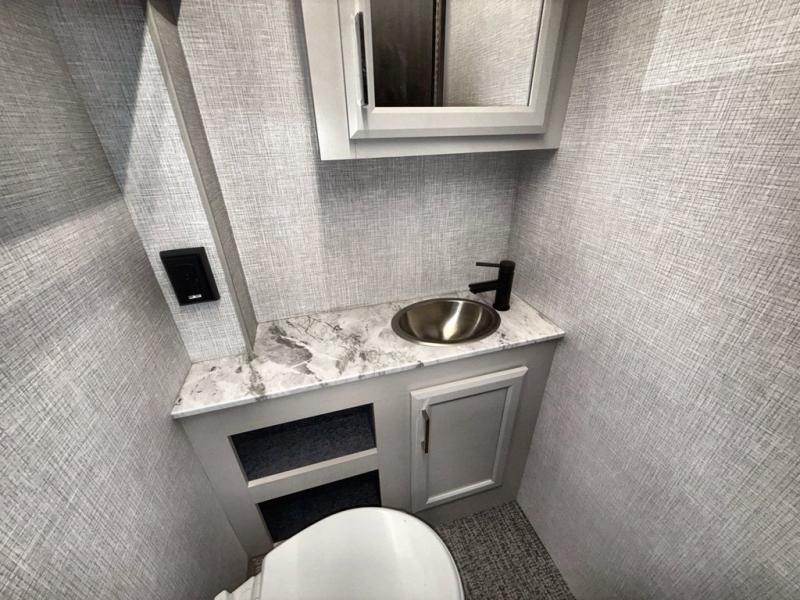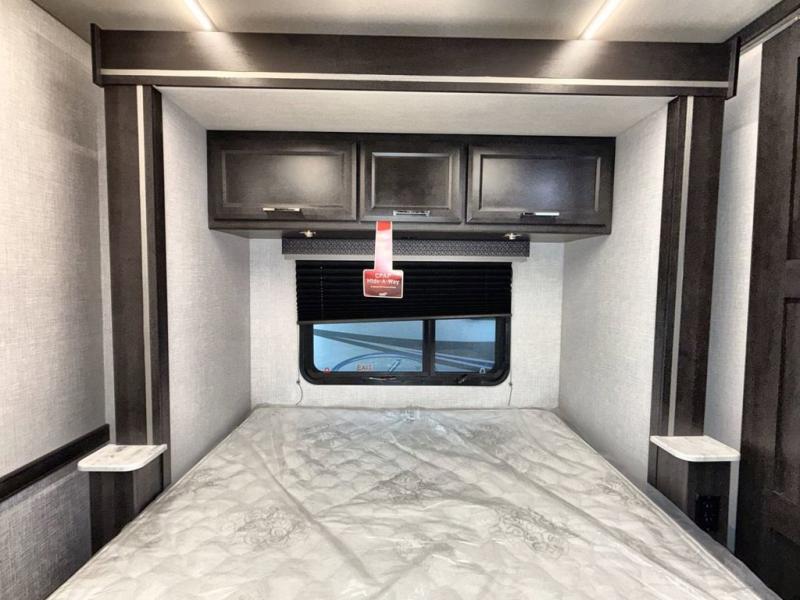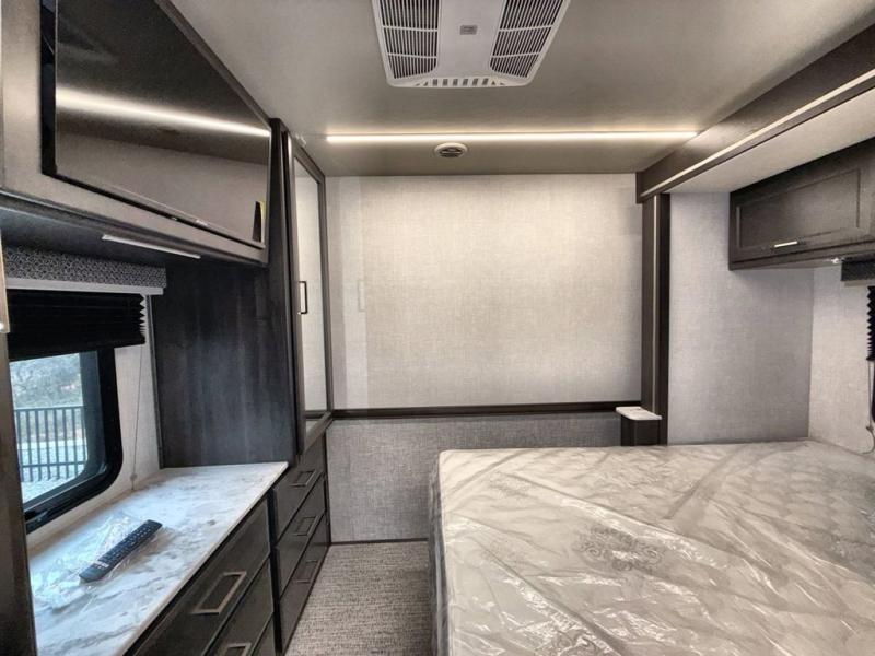 This double slide out coach is perfect for weekend excursions or extended stays! You will love having your own private bedroom in the back with a queen bed slide out and a wardrobe to keep your things organized. The private toilet and sink is right across the hall from the shower, so two people can freshen up at once. While the chef of your group is making lunch on the three burner range/convection microwave combo, the others can visit around the U-shaped dinette or relax on the sofa. These pieces of furniture will also double as additional sleeping space for guests, along with the overhead bunk!