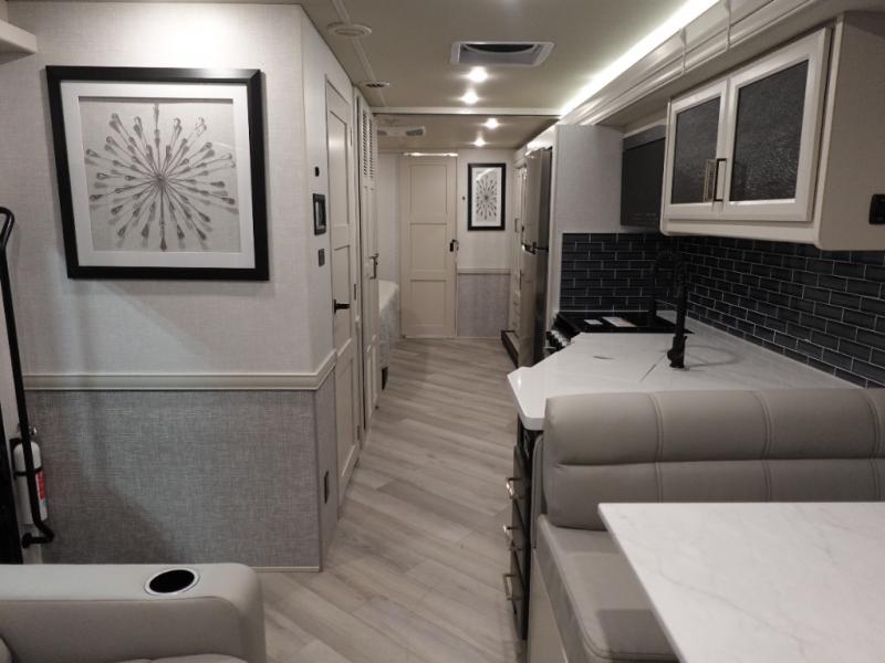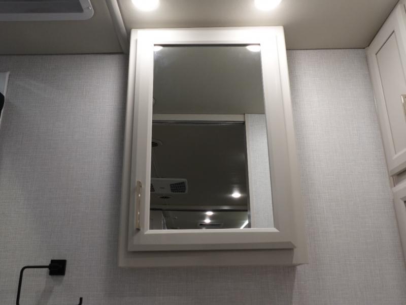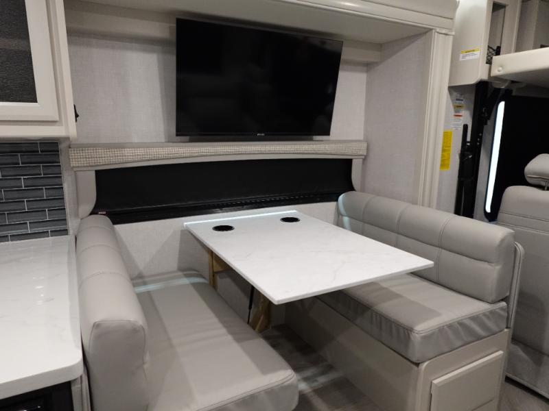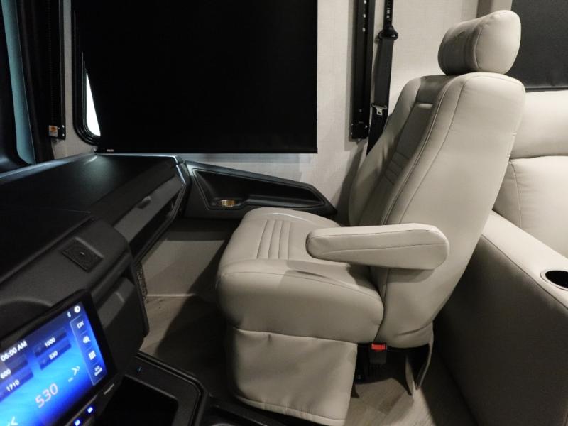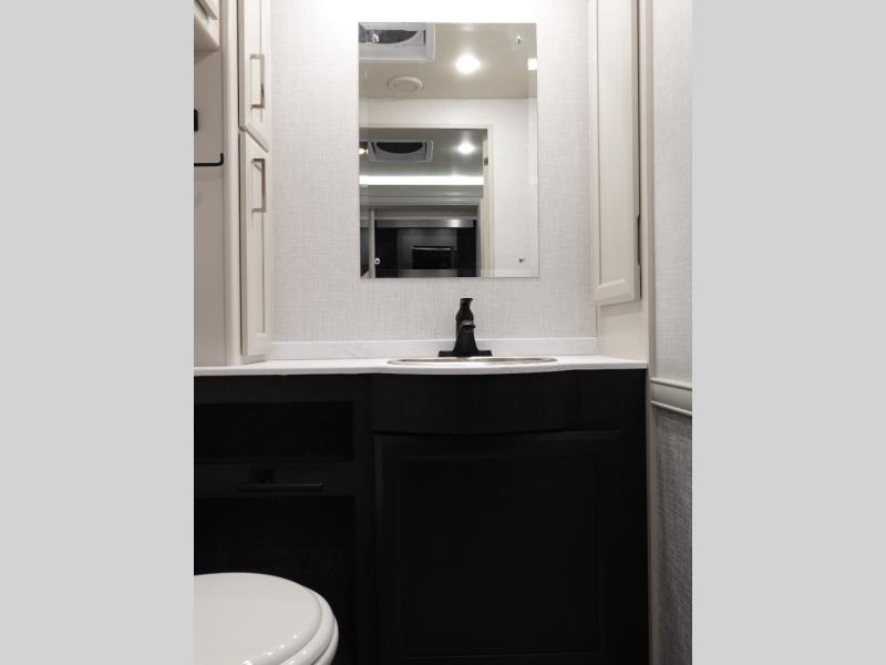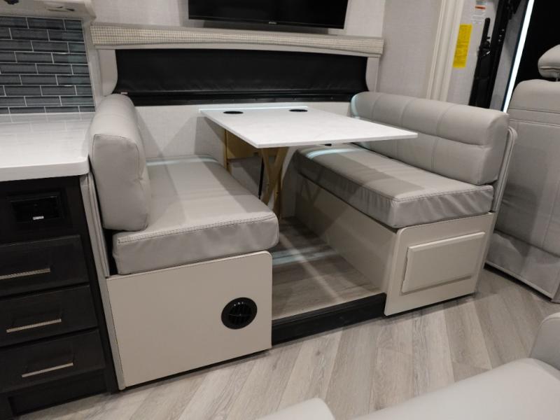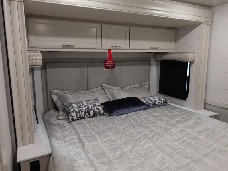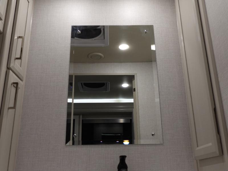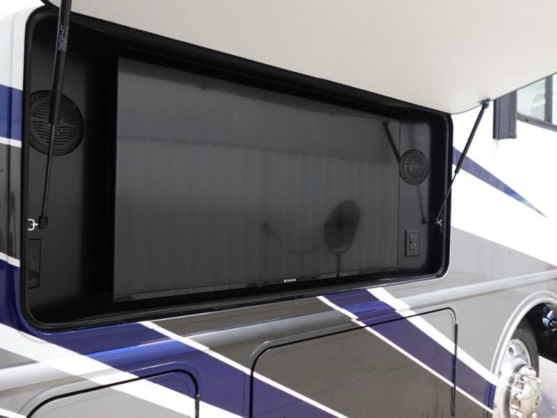 With a bath and a half, it's a clean decision to take this motorhome every where you go! The full rear bathroom has a 30" x 36" shower with a skylight above and leads directly into the master suite where you will find a Serenity Series king bed slide with CPAP storage across from a LED TV. Enjoy home cooked meals on the road with the three burner cooktop, the stainless steel residential refrigerator, and even a stainless steel convection microwave. Relax in true comfort on either the Dream Dinette or the theater seats while watching a movie with the LED Smart TV or you can head outside to the exterior entertainment center and breathe in some fresh air!