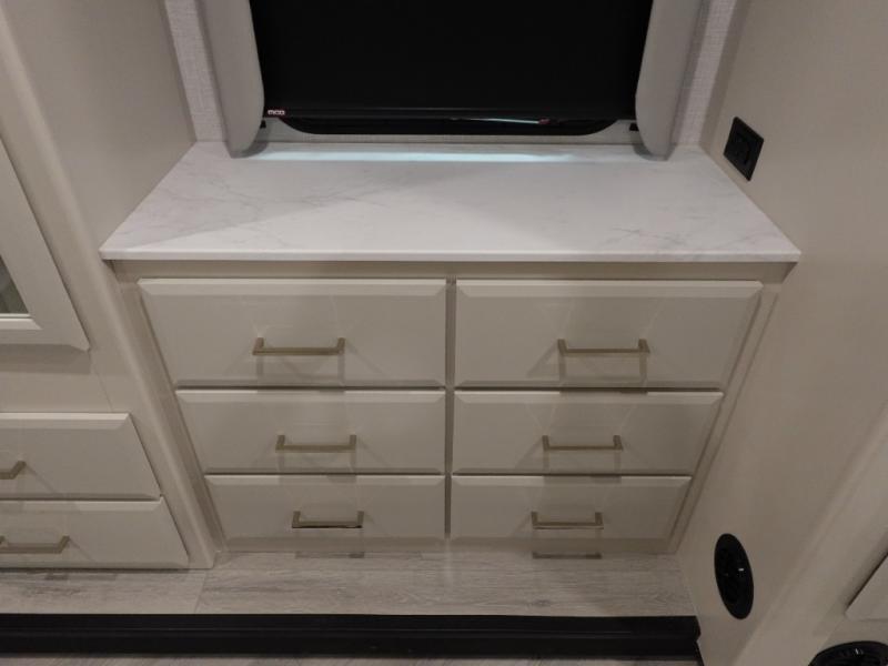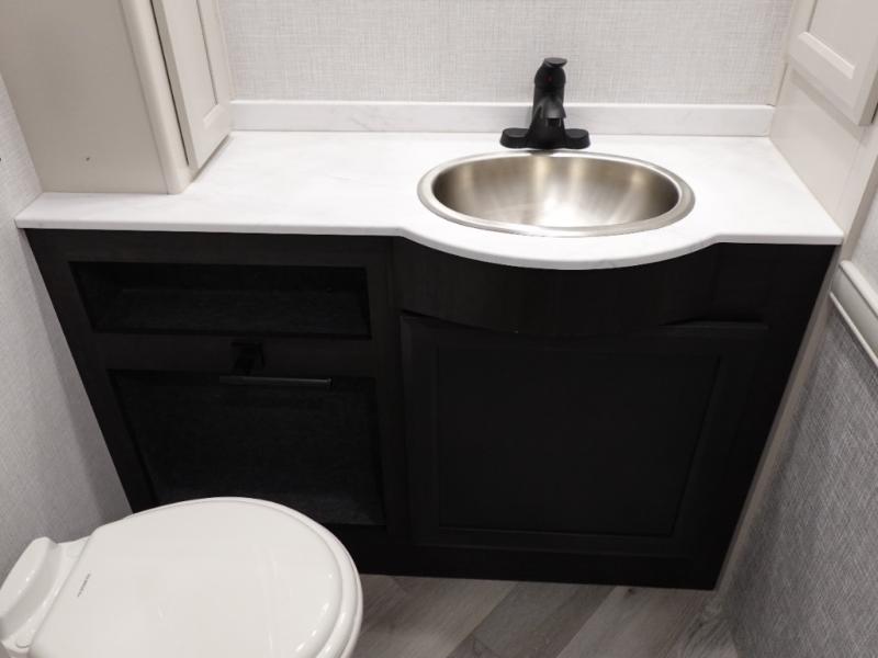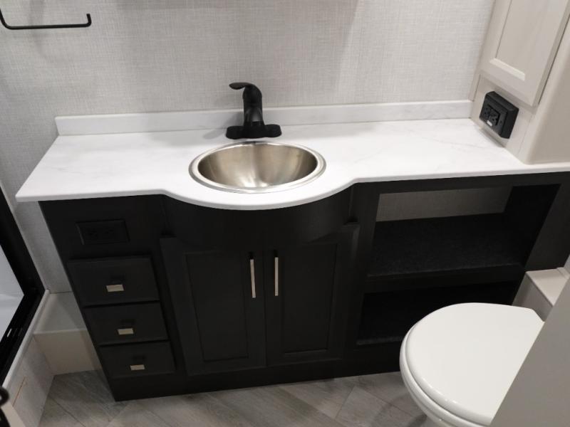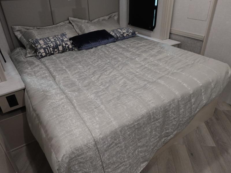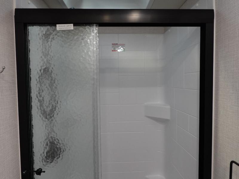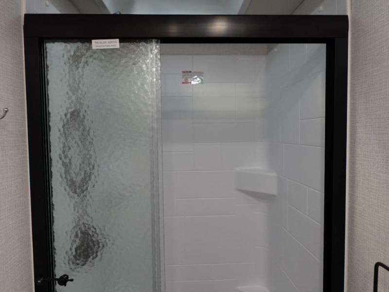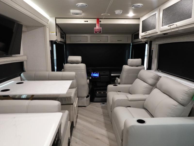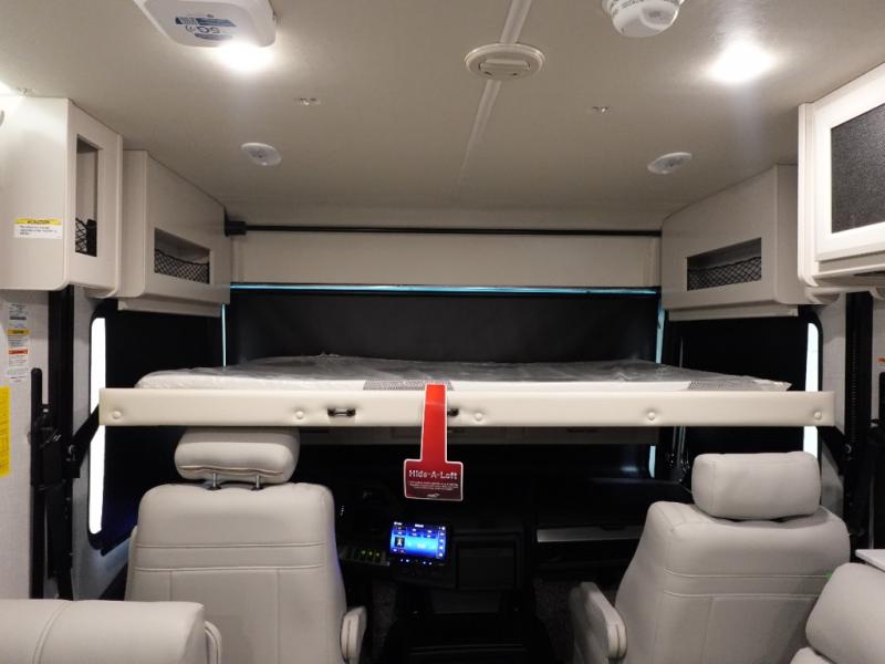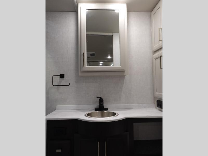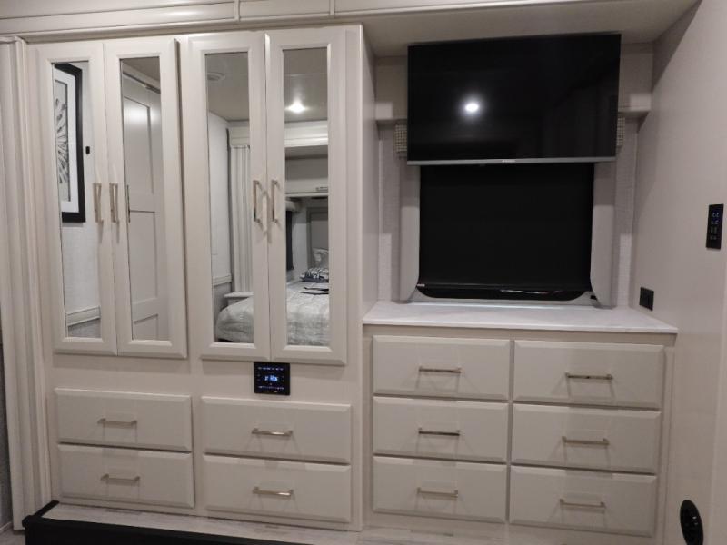 With a bath and a half, it's a clean decision to take this motorhome every where you go! The full rear bathroom has a 30" x 36" shower with a skylight above and leads directly into the master suite where you will find a Serenity Series king bed slide with CPAP storage across from a LED TV. Enjoy home cooked meals on the road with the three burner cooktop, the stainless steel residential refrigerator, and even a stainless steel convection microwave. Relax in true comfort on either the Dream Dinette or the theater seats while watching a movie with the LED Smart TV or you can head outside to the exterior entertainment center and breathe in some fresh air!