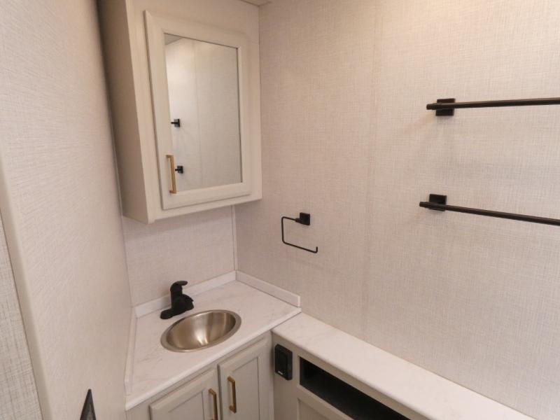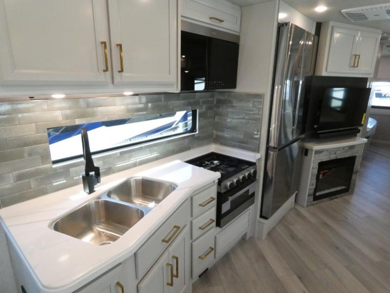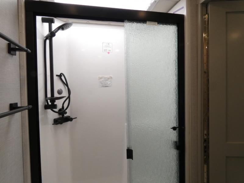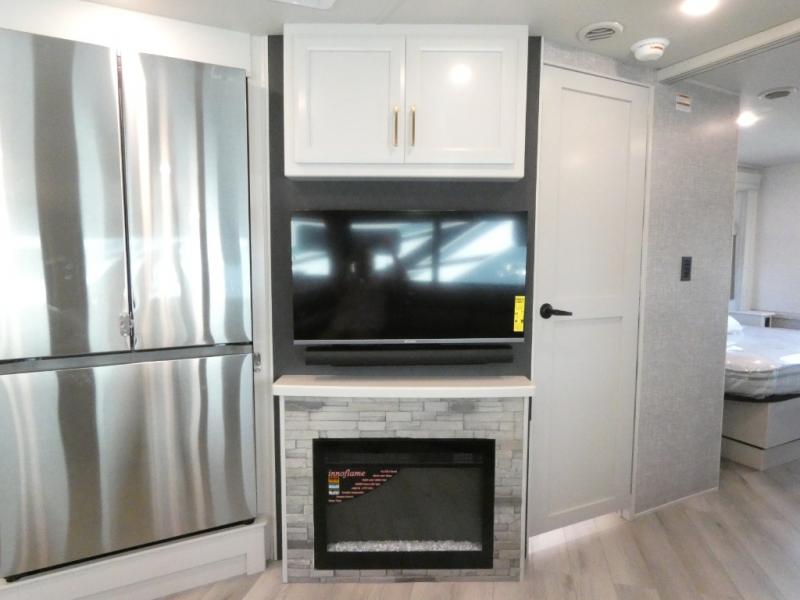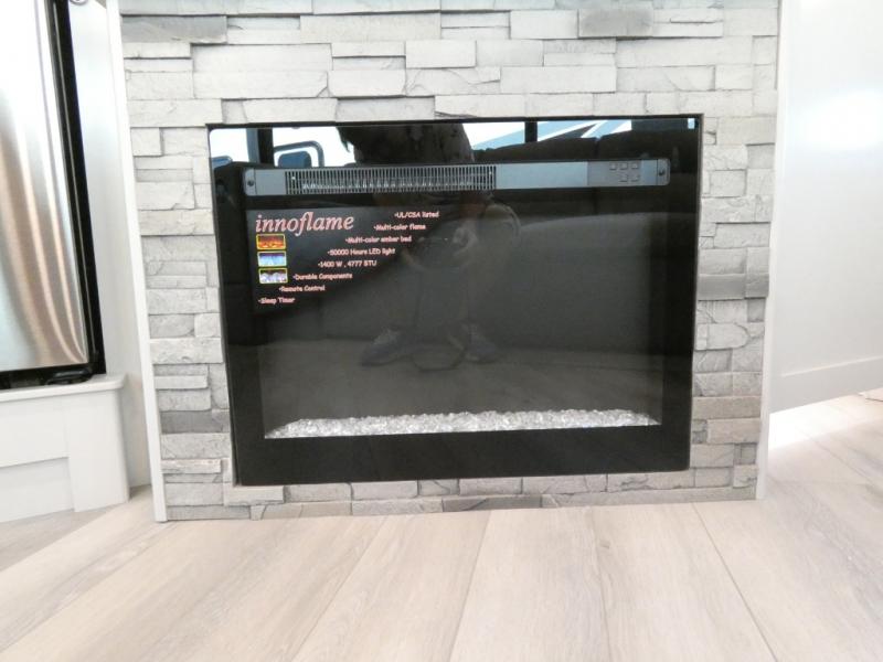 This double slide out coach will meet your needs perfectly on every family vacation. There is a Rest EZ booth dinette and jack-knife sofa in the main living area, plus a fireplace with an LED TV to make it feel a little more like home. You can prepare meals on the three burner cooktop, and leftovers can go in the stainless steel residential refrigerator. You're going to love the spacious full bath that includes a shower with a seat, a skylight, plus a medicine cabinet with a mirror.