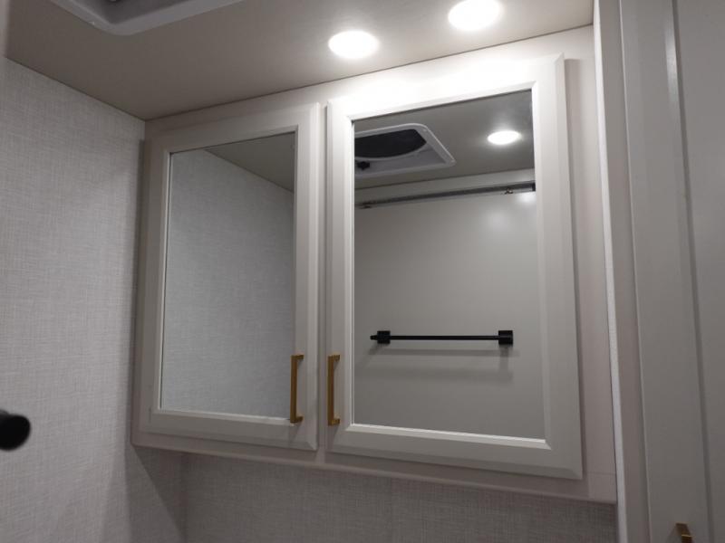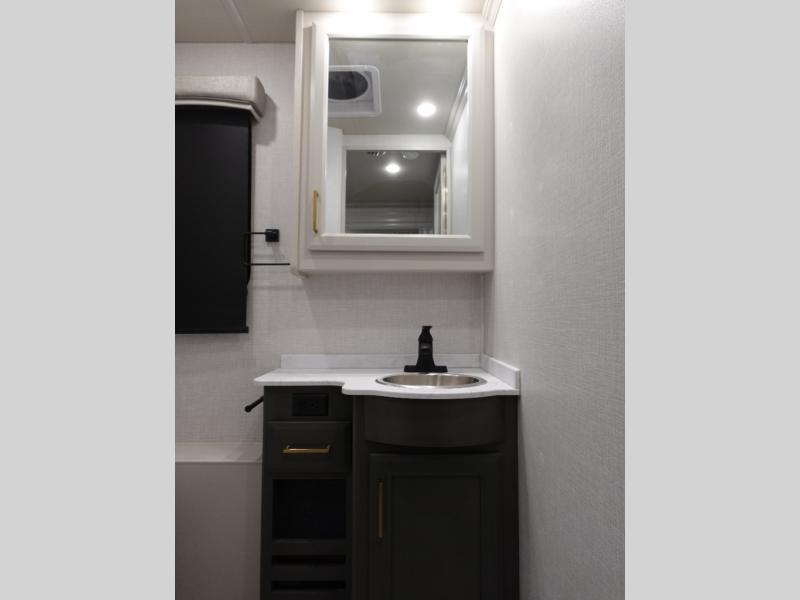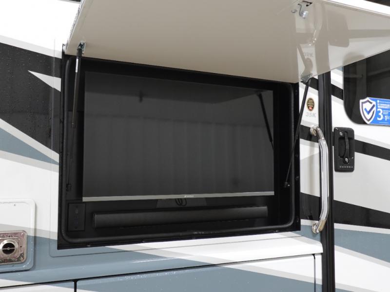 Traveling with a larger group is easier than ever in this coach with a bath and a half, two slides, plus sleeping space for four. You can make breakfast in the morning on the three burner cooktop, or use the convection microwave provided. Your crew can dine at the dinette and relax on the theater seats before heading out for the day. This model also includes a master bedroom with its own LED TV, dual bedroom wardrobes, plus a king bed slide out with storage space for a CPAP if needed.