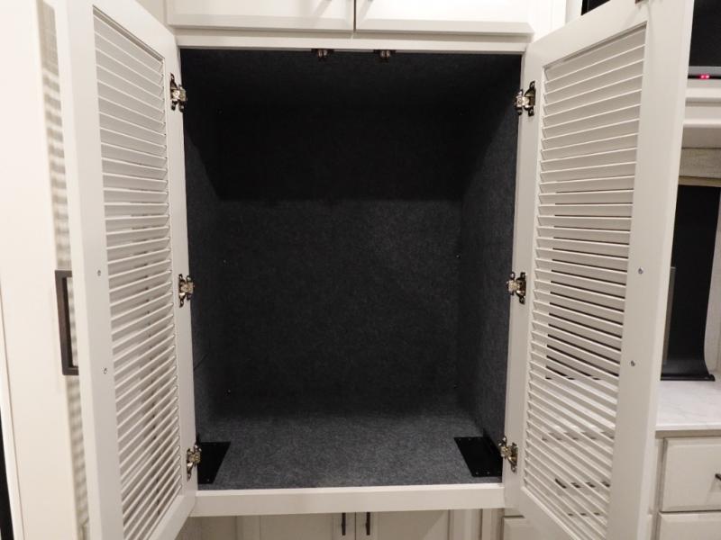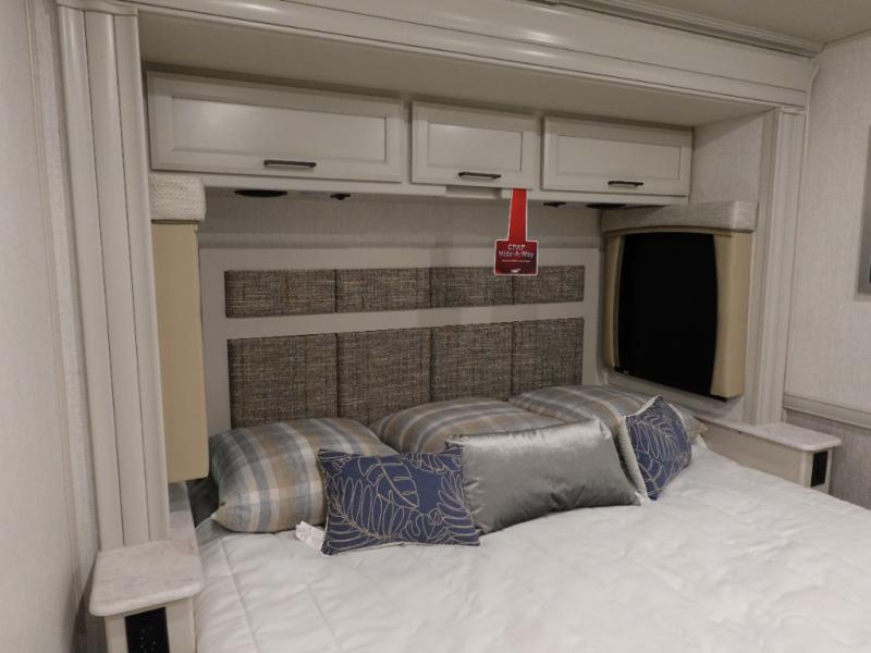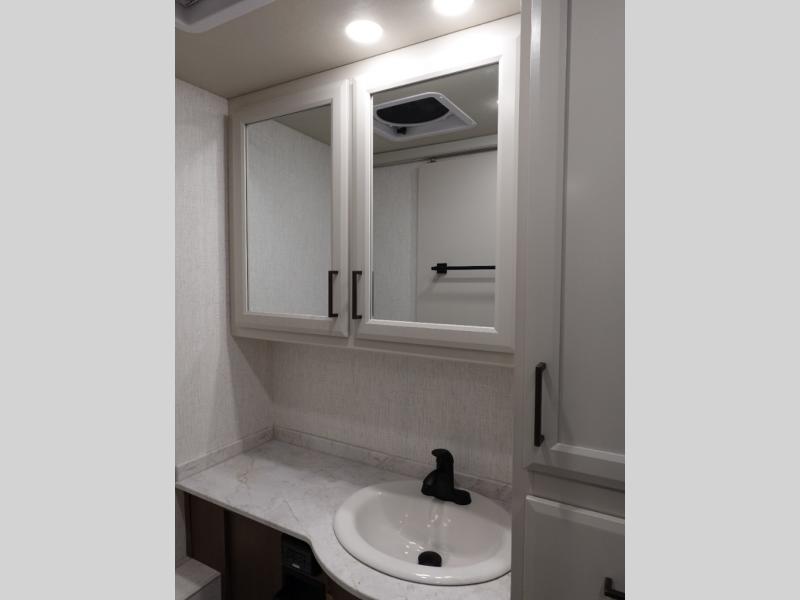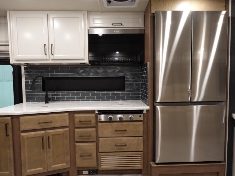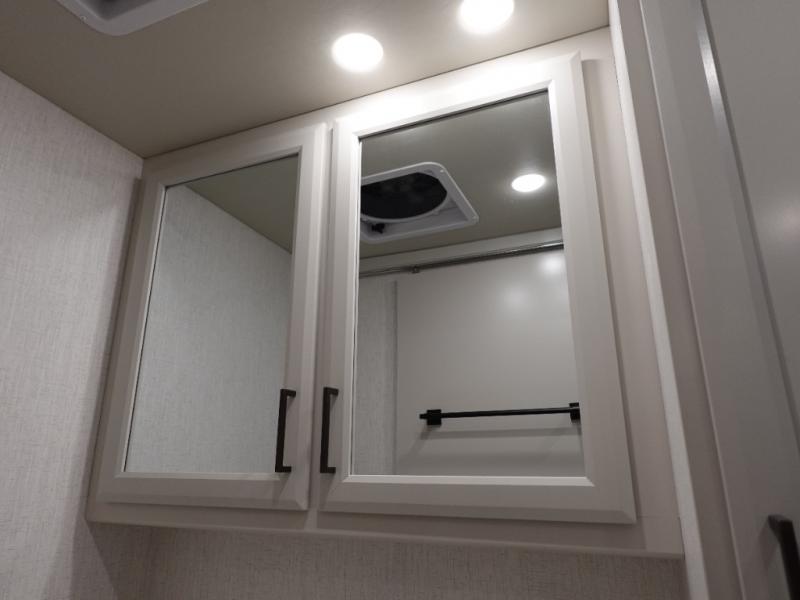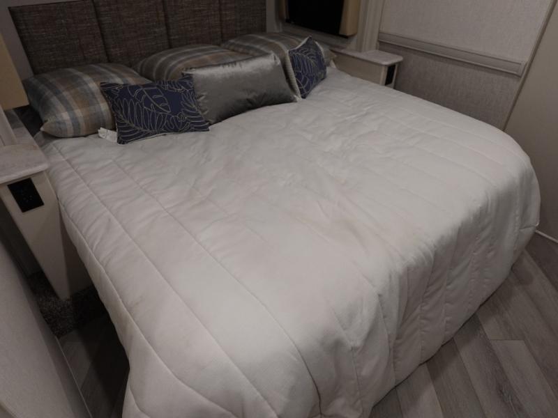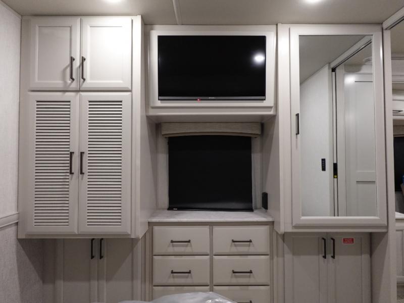 Traveling with a larger group is easier than ever in this coach with a bath and a half, two slides, plus sleeping space for four. You can make breakfast in the morning on the three burner cooktop, or use the convection microwave provided. Your crew can dine at the dinette or relax on theater seats before heading out for the day. This model also includes a master bedroom with its own LED TV, dual bedroom wardrobes, plus a king bed slide out with storage space for a CPAP if needed.