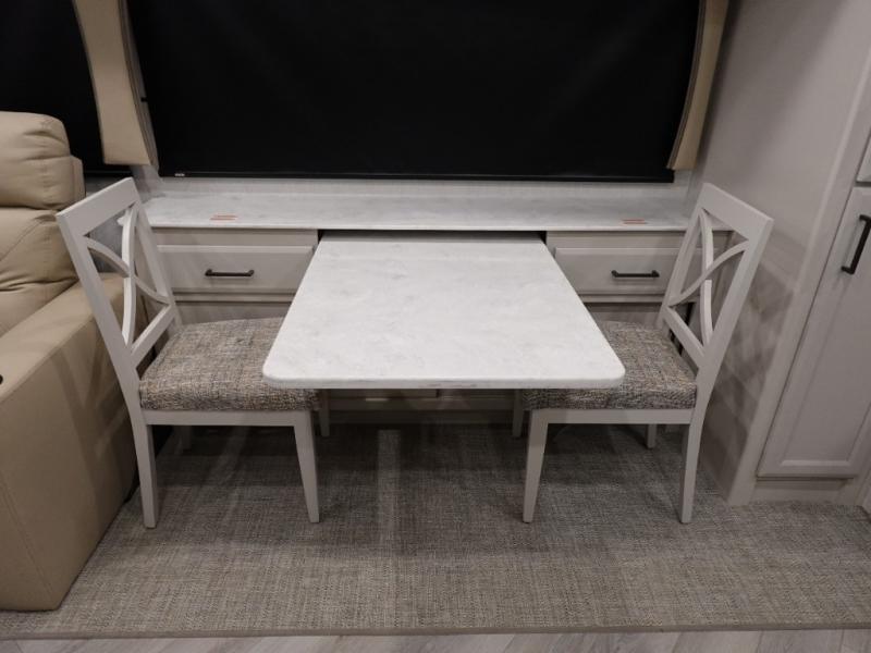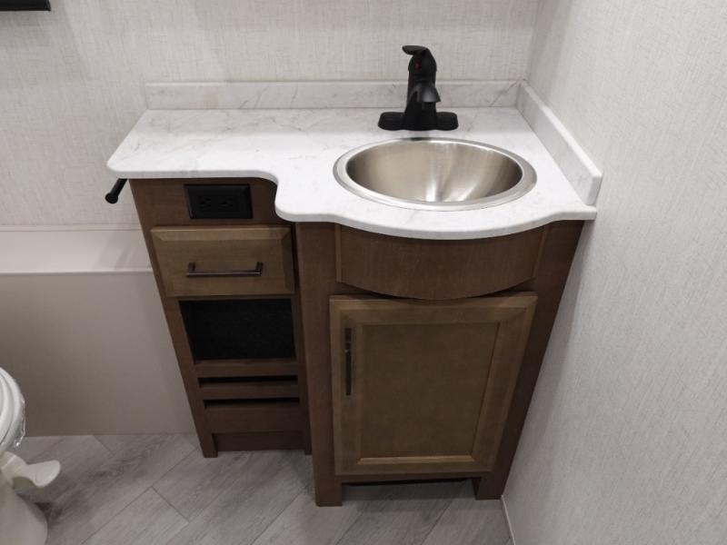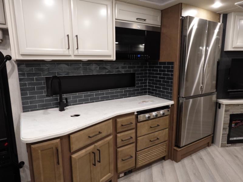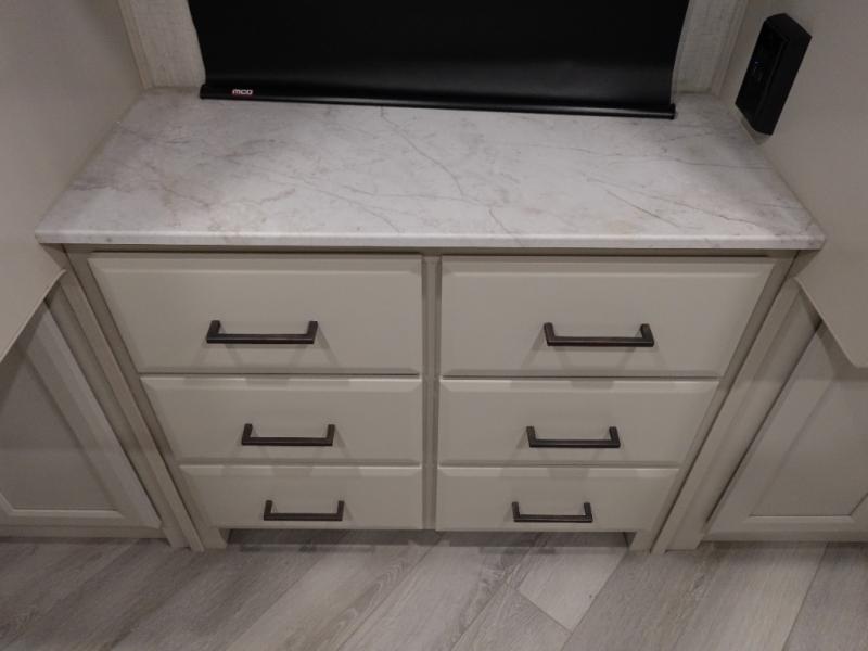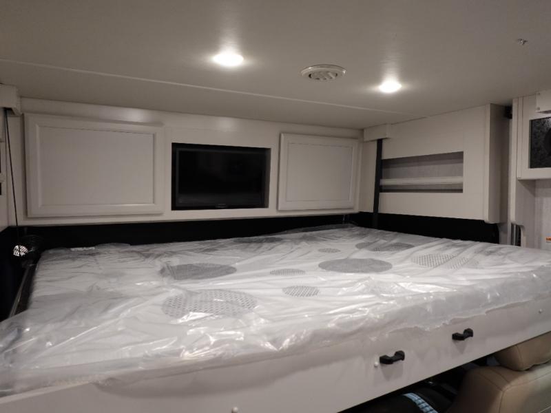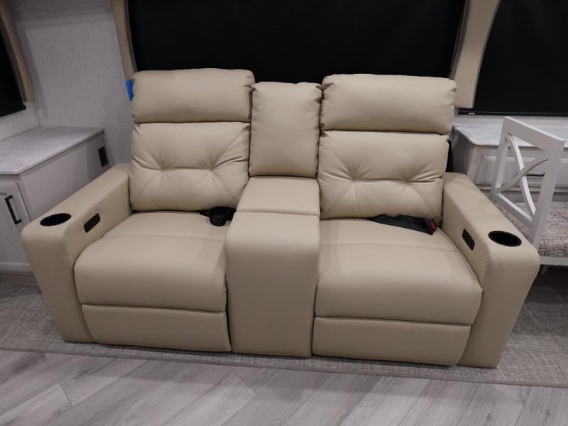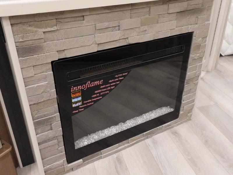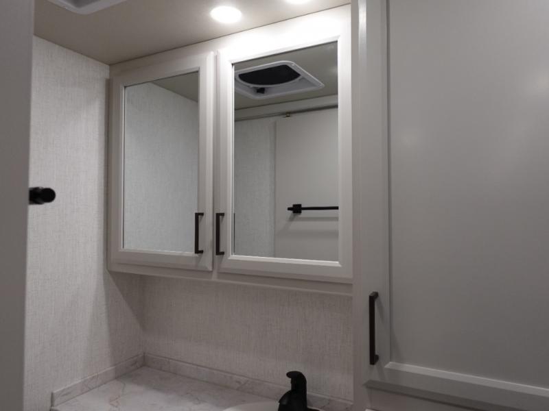 Traveling with a larger group is easier than ever in this coach with a bath and a half, two slides, plus sleeping space for four. You can make breakfast in the morning on the three burner cooktop, or use the convection microwave provided. Your crew can dine at the dinette or relax on theater seats before heading out for the day. This model also includes a master bedroom with its own LED TV, dual bedroom wardrobes, plus a king bed slide out with storage space for a CPAP if needed.
