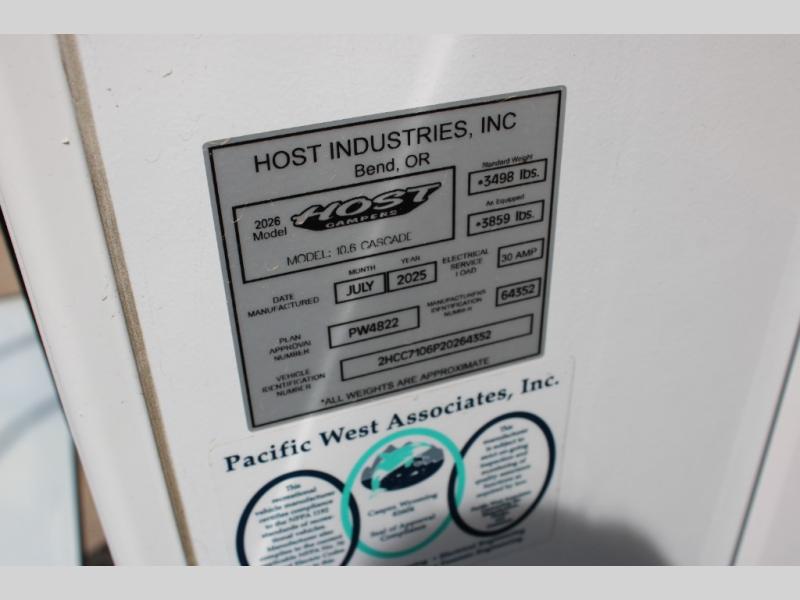 New 2026 Host Industries Host Campers Cascade 10.6 Truck Camper