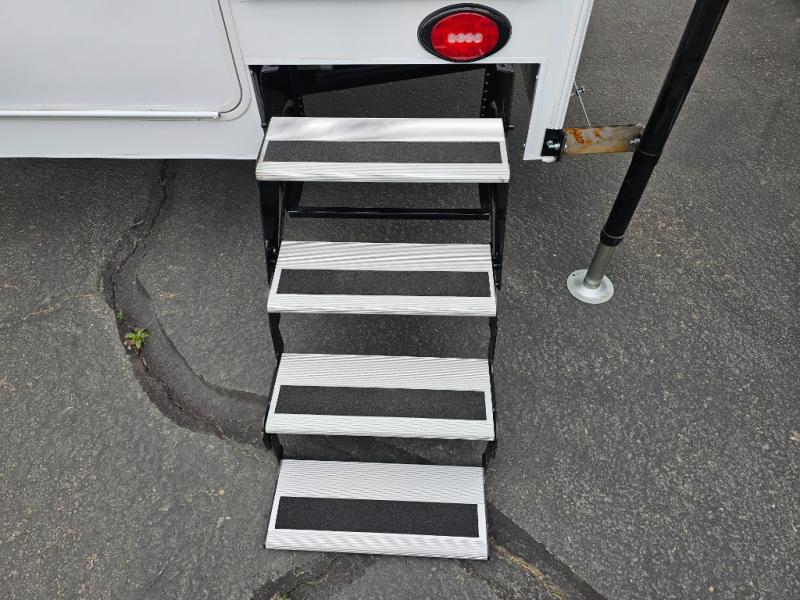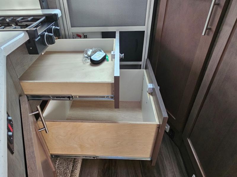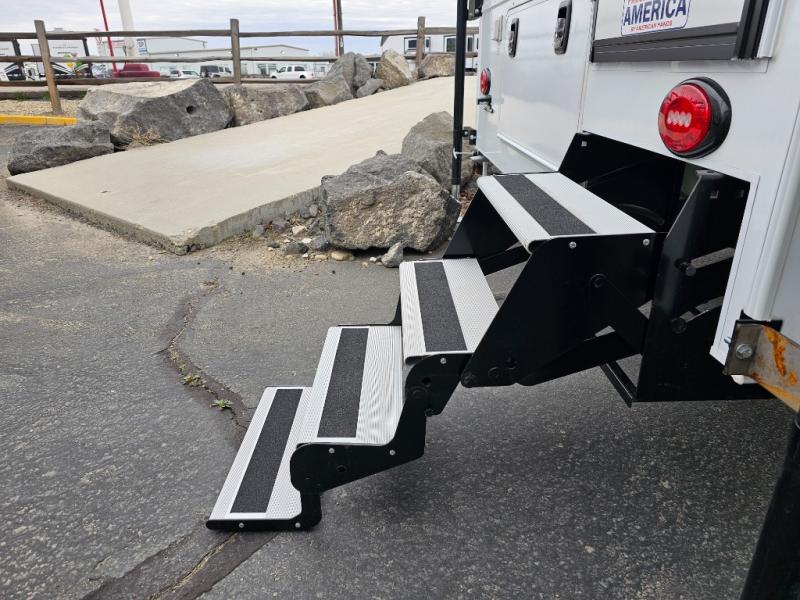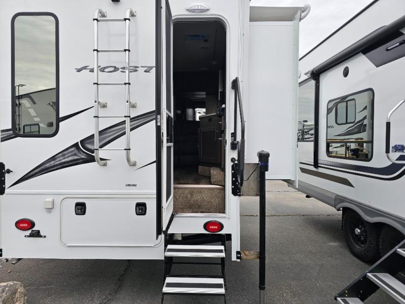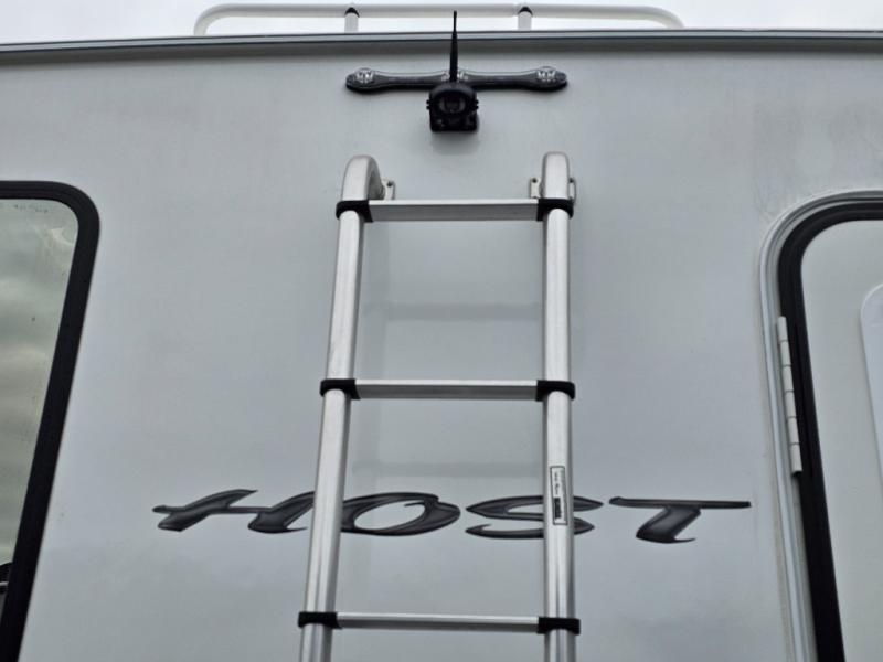 With any Host Industries Host Campers truck camper, there is ease of setting up with electric jacks with a wireless remote, and security when traveling thanks to the heavy duty camper tie down brackets. Each is constructed with two or three slide outs giving you more interior space on an Ultralite 100% aluminum structure with vacuum bonded foam insulated walls, a floor and a ceiling, plus there is a one-piece TPO roof. Some conveniences include an enclosed service center, enclosed and heated holding tanks, large J-rail rain gutters, and access panels for the slide out motors, water tank and holding tanks to mention a few. And the interior is just as impressive from the style, decor choices, the 12 volt LED lighting system, the Grani-coat solid surface countertops, and the many options you can add to customize your Host Camper!