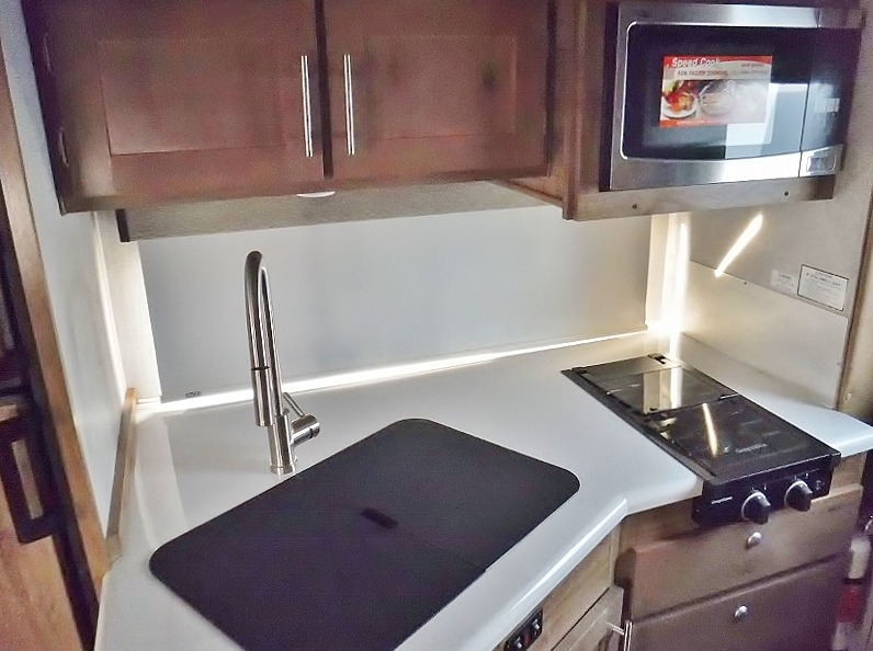 With any Host Industries Host Campers truck camper, there is ease of setting up with electric jacks with a wireless remote, and security when traveling thanks to the heavy duty camper tie down brackets. Each is constructed with two or three slide outs giving you more interior space on an Ultralite 100% aluminum structure with vacuum bonded foam insulated walls, a floor and a ceiling, plus there is a one-piece TPO roof. Some conveniences include an enclosed service center, enclosed and heated holding tanks, large J-rail rain gutters, and access panels for the slide out motors, water tank and holding tanks to mention a few. And the interior is just as impressive from the style, decor choices, the 12 volt LED lighting system, the Grani-coat solid surface countertops, and the many options you can add to customize your Host Camper!