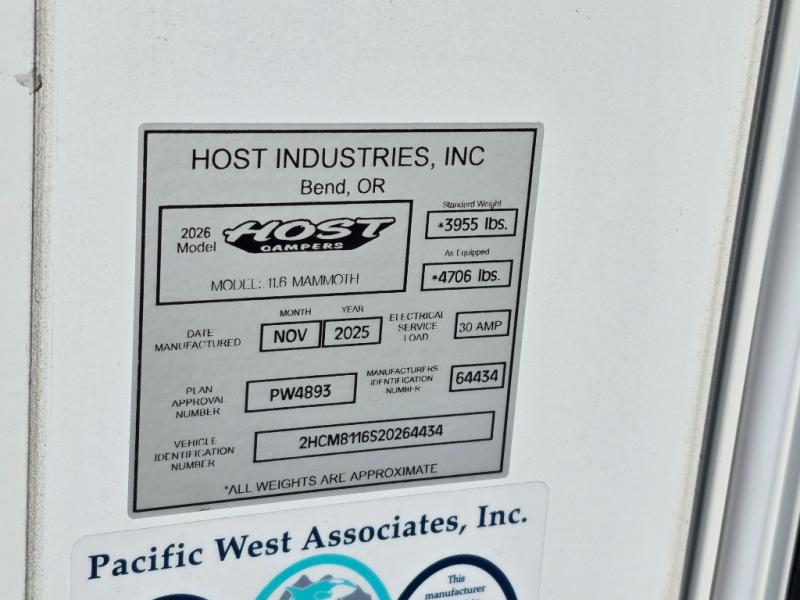 New 2026 Host Industries Host Campers Mammoth 11.6 Truck Camper