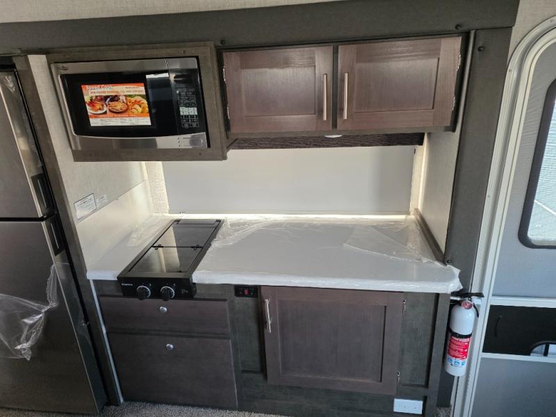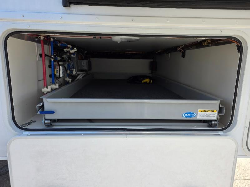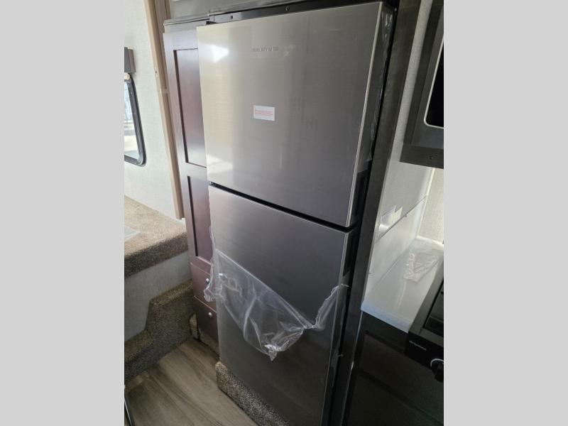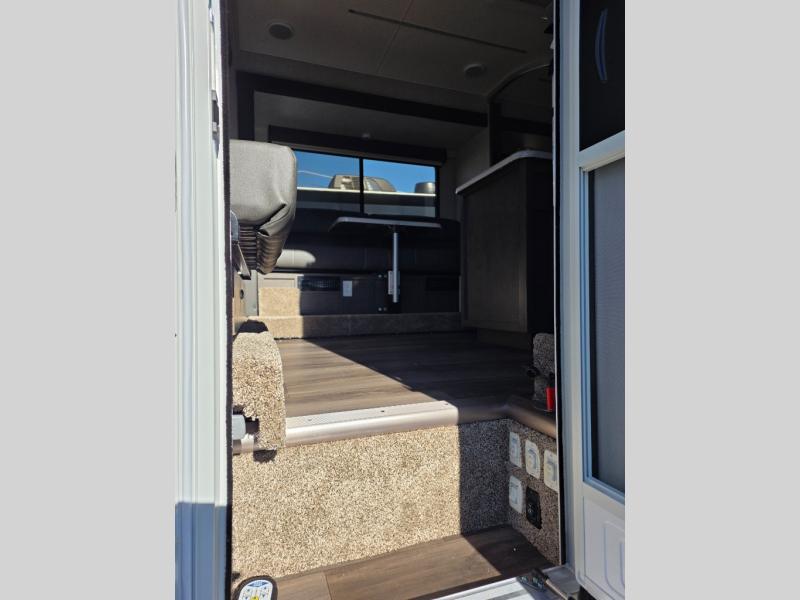 Luxury, convenience and outdoor adventure are just inside and around the corner in this truck camper! There is a queen bed or king option, dual wardrobes and dual entrances into the bedroom, and a second wardrobe for your clothes. You can dine, play games and work at the U-shaped dinette, plus relax on the sofa slide while watching your favorite shows on the flat screen TV above a fireplace for a cozy evening. The full bathroom will keep you refreshed, the pantry allows you to store lots of goodies, and the triple slides give you the interior space you are looking for.