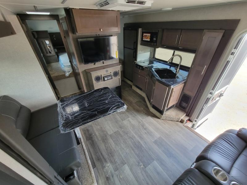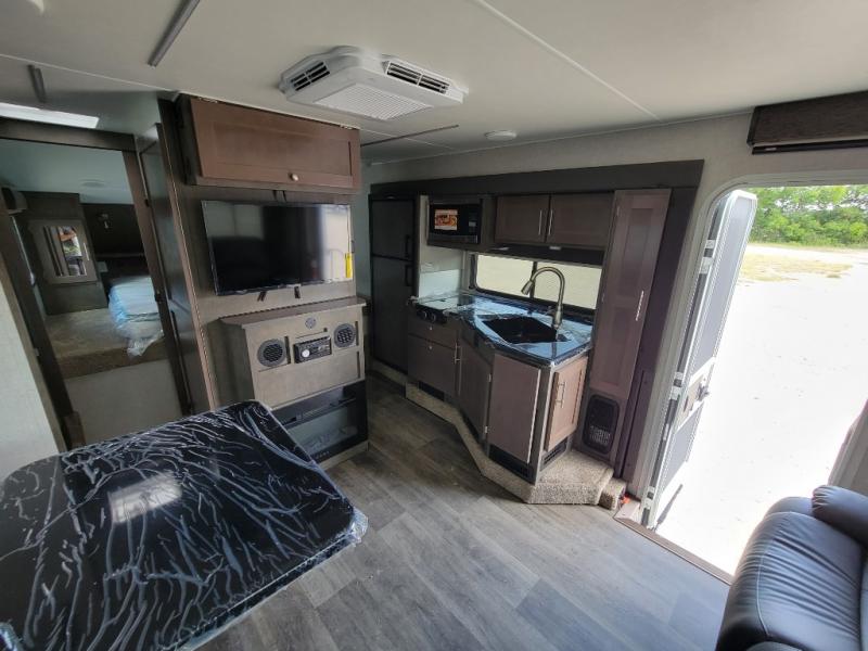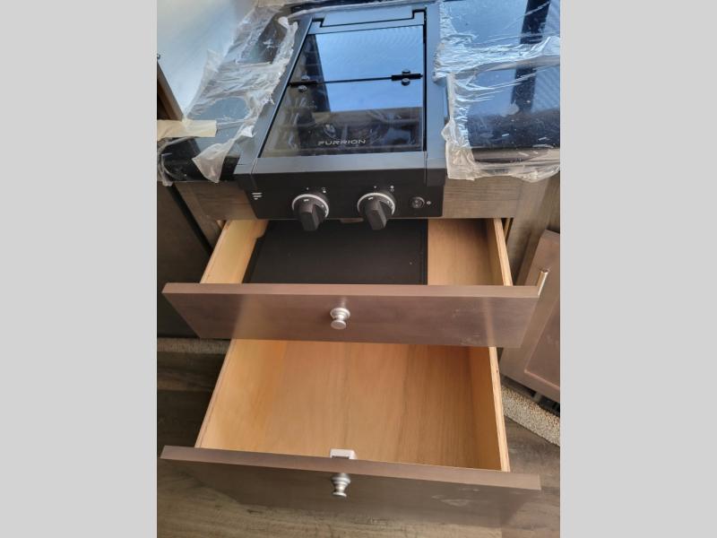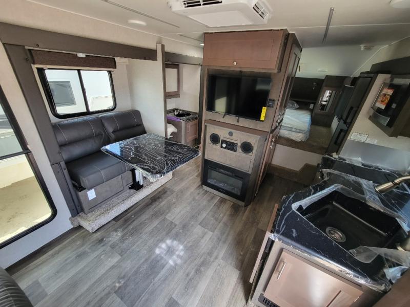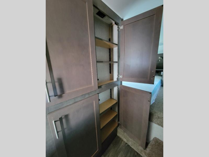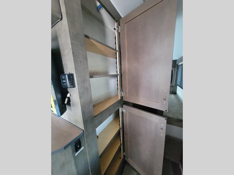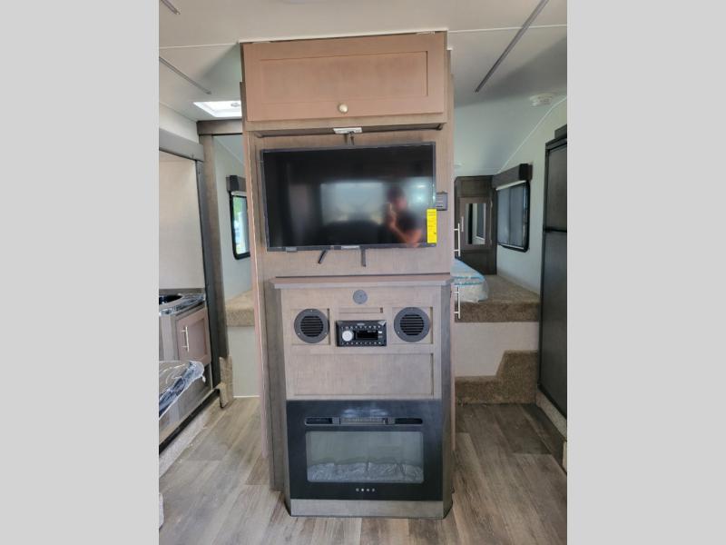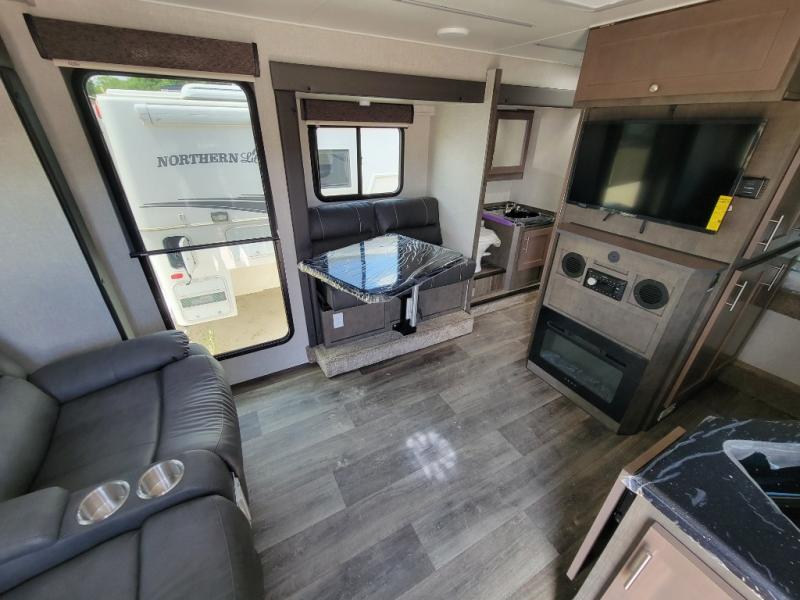 Triple slides offer more floor space in this truck camper with a rear U-shaped dinette slide and opposing side slides. You also have dual access to the front queen bed with clothing storage and there is a full bathroom to stay refreshed before mealtime or bedtime. The galley kitchen offers everything at your fingertips to cook meals each day. You can dine at the couch with a removable table or choose an optional full wardrobe or laundry center option in its place. You'll also enjoy a U-shaped dinette that can sleep two, or you can choose the optional 6' couch or optional theater seating. There are other options to choose from such as adding a living room and/or bedroom TV and a fireplace to stay cozy in the living and kitchen area.