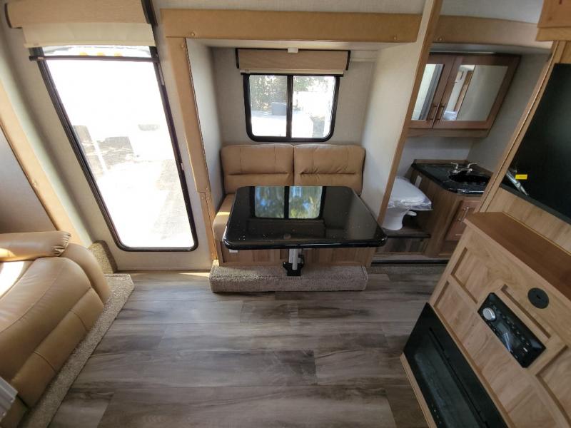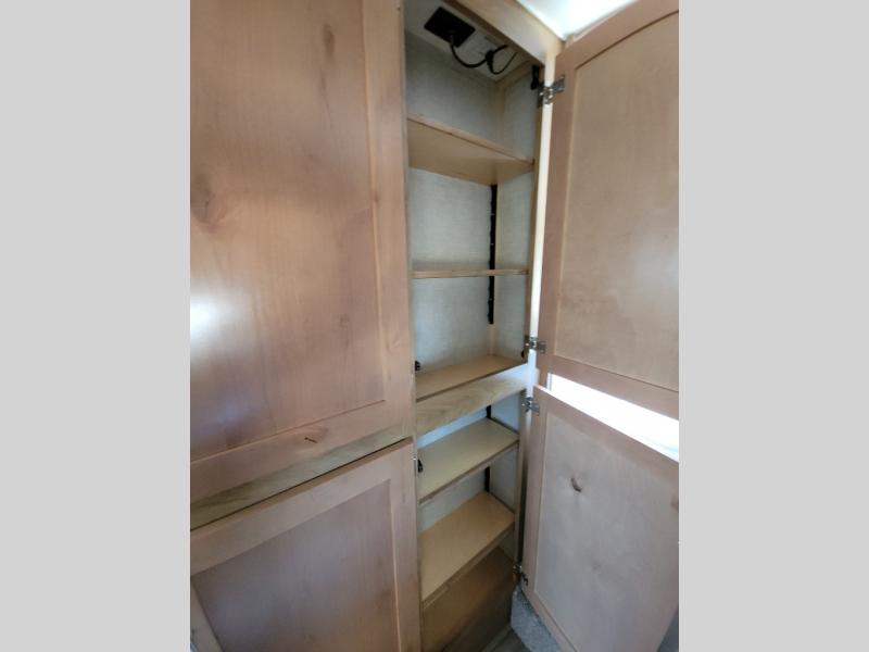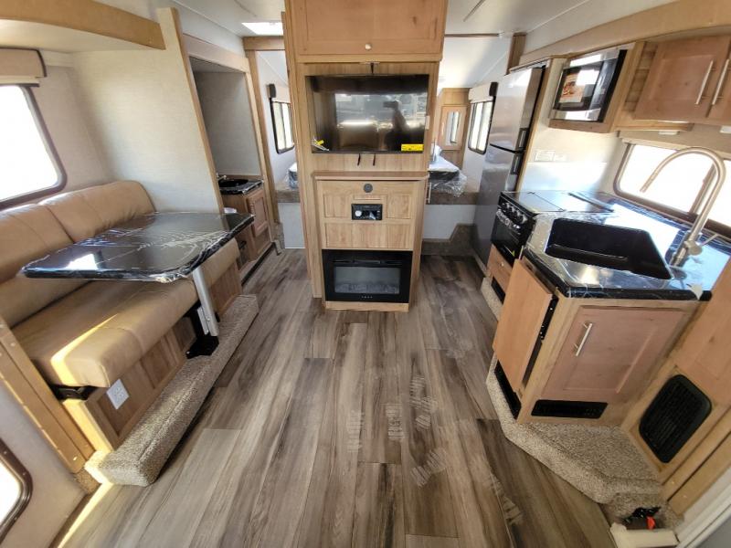 Triple slides offer more floor space in this truck camper with a rear U-shaped dinette slide and opposing side slides. You also have dual access to the front queen bed with clothing storage and there is a full bathroom to stay refreshed before mealtime or bedtime. The galley kitchen offers everything at your fingertips to cook meals each day. You can dine at the couch with a removable table or choose an optional full wardrobe or laundry center option in its place. You'll also enjoy a U-shaped dinette that can sleep two, or you can choose the optional 6' couch or optional theater seating. There are other options to choose from such as adding a living room and/or bedroom TV and a fireplace to stay cozy in the living and kitchen area.