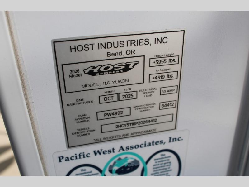 New 2026 Host Industries Host Campers Yukon 11.6 Truck Camper