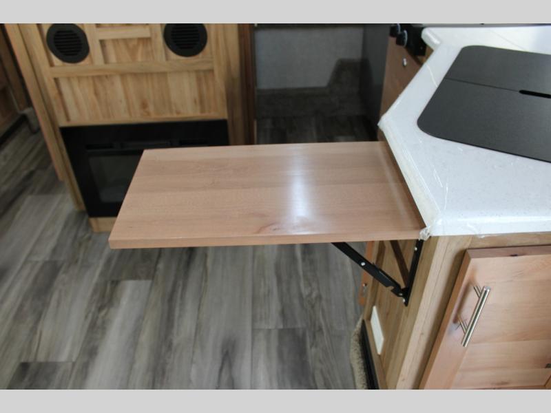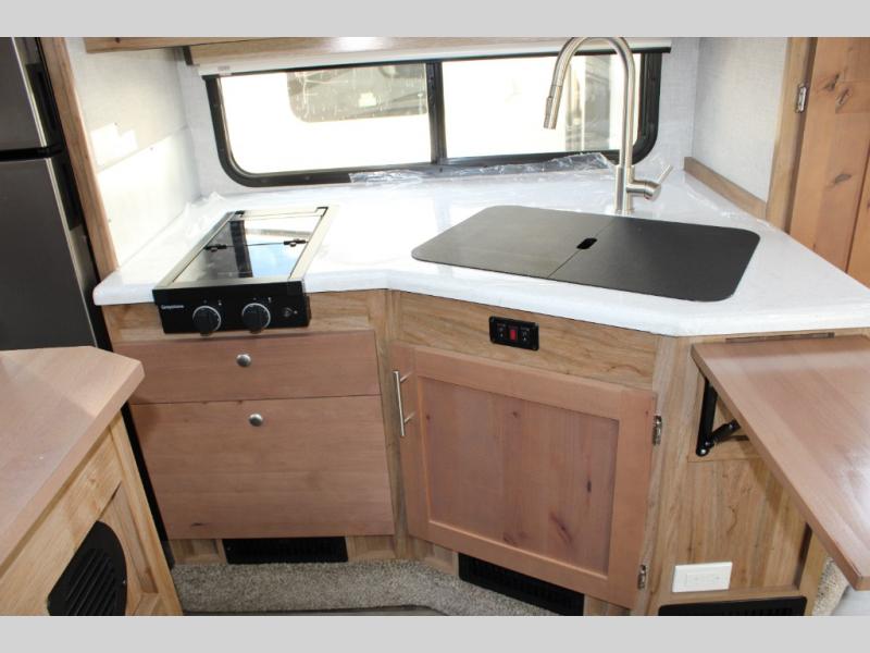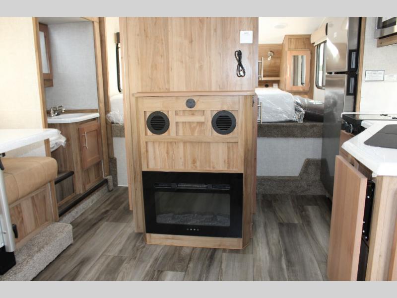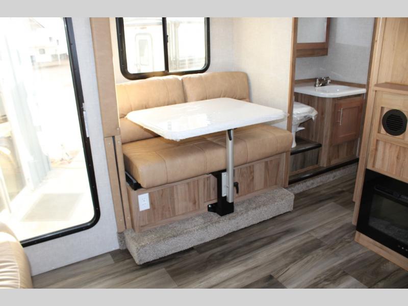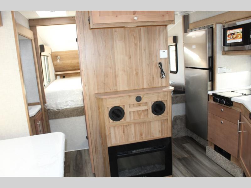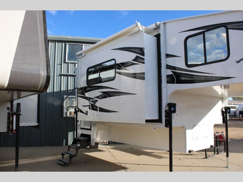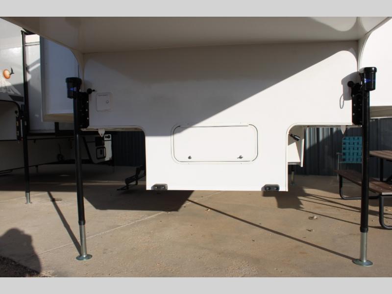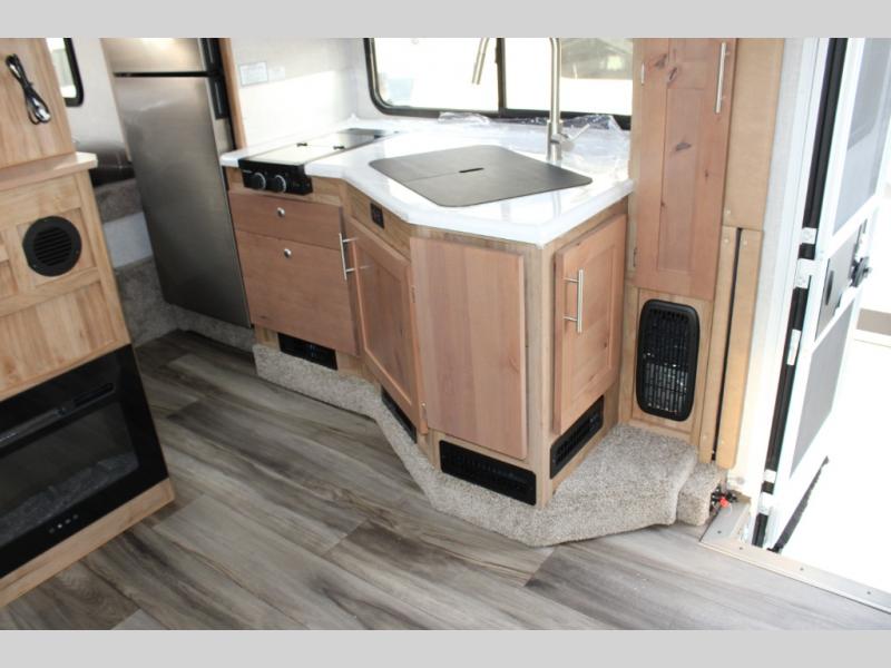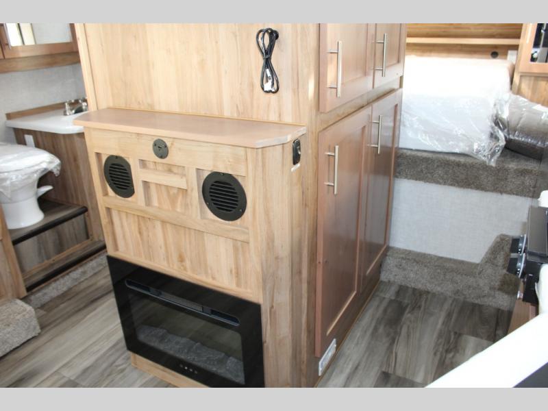 Triple slides offer more floor space in this truck camper with a rear theater seating slide and opposing side slides. You also have dual access to the front king bed with clothing storage and there is a full bathroom to stay refreshed before mealtime or bedtime. The galley kitchen offers everything at your fingertips to cook meals each day. You can dine at the couch with a removable table or choose an optional full wardrobe or laundry center option in its place. You'll also enjoy a U-shaped dinette that can sleep two, or you can choose the optional 6' couch or optional theater seating. There are other options to choose from such as adding a living room and/or bedroom TV and a fireplace to stay cozy in the living and kitchen area.
