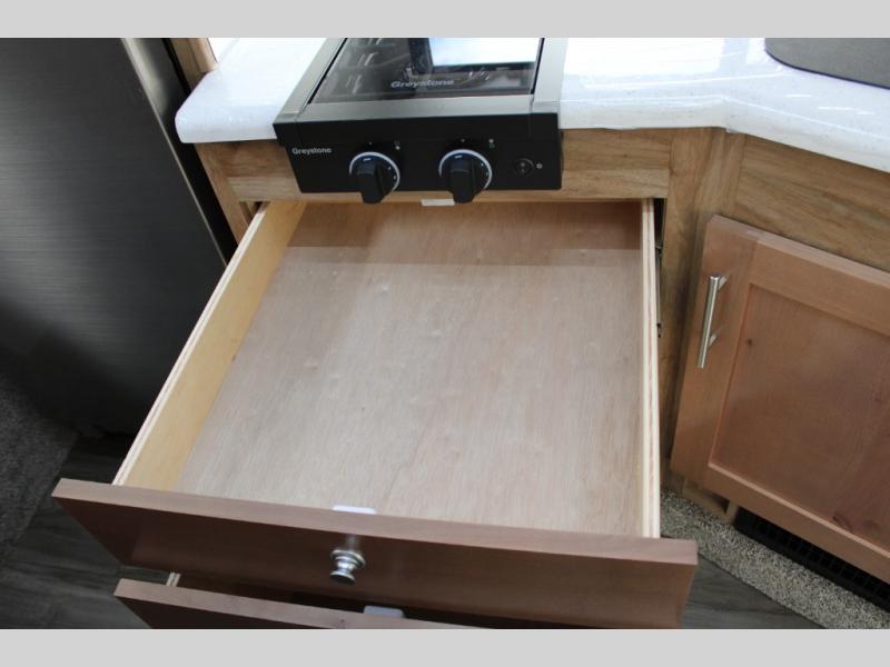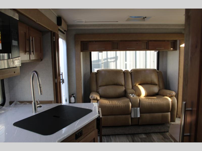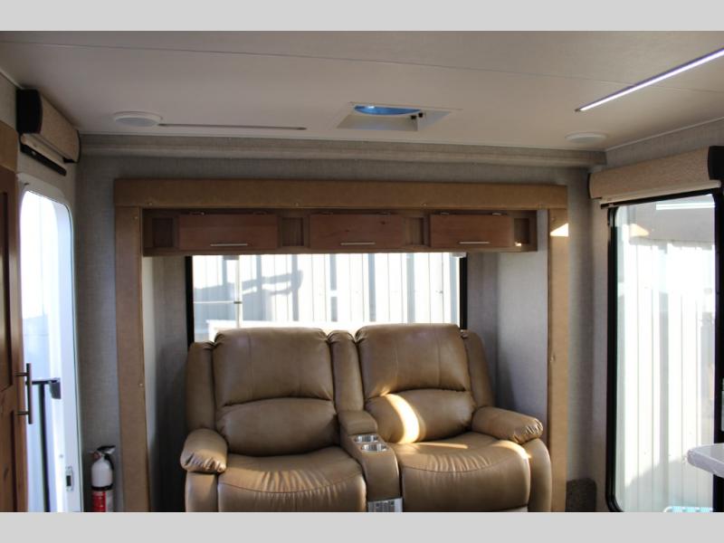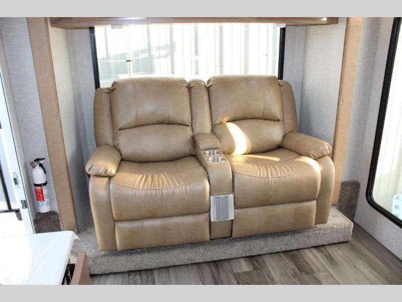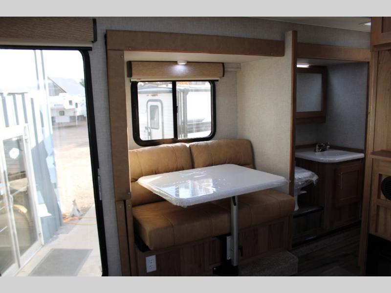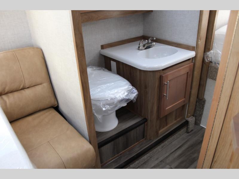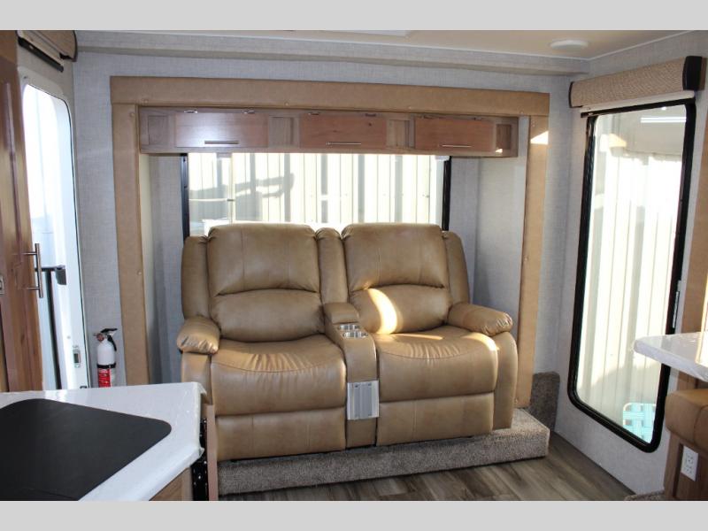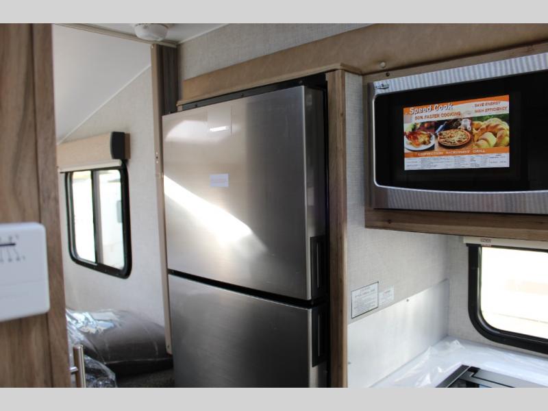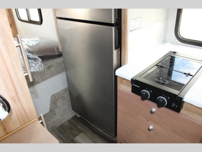 Triple slides offer more floor space in this truck camper with a rear theater seating slide and opposing side slides. You also have dual access to the front king bed with clothing storage and there is a full bathroom to stay refreshed before mealtime or bedtime. The galley kitchen offers everything at your fingertips to cook meals each day. You can dine at the couch with a removable table or choose an optional full wardrobe or laundry center option in its place. You'll also enjoy a U-shaped dinette that can sleep two, or you can choose the optional 6' couch or optional theater seating. There are other options to choose from such as adding a living room and/or bedroom TV and a fireplace to stay cozy in the living and kitchen area.